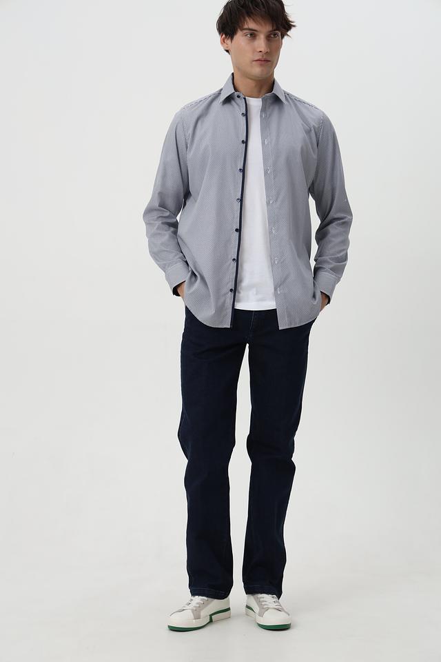 Брюки имеют прямой крой, который обеспечивает свободу движений и комфортную посадку. Они оснащены поясом с петлями для ремня, а также двумя боковыми и двумя задними накладными карманами, что делает их практичными и функциональными.
