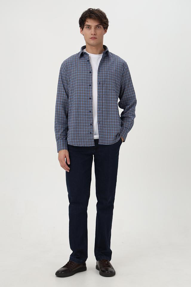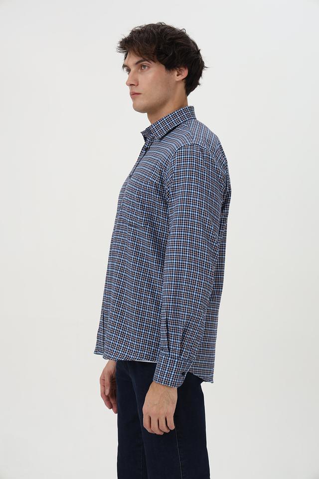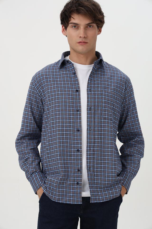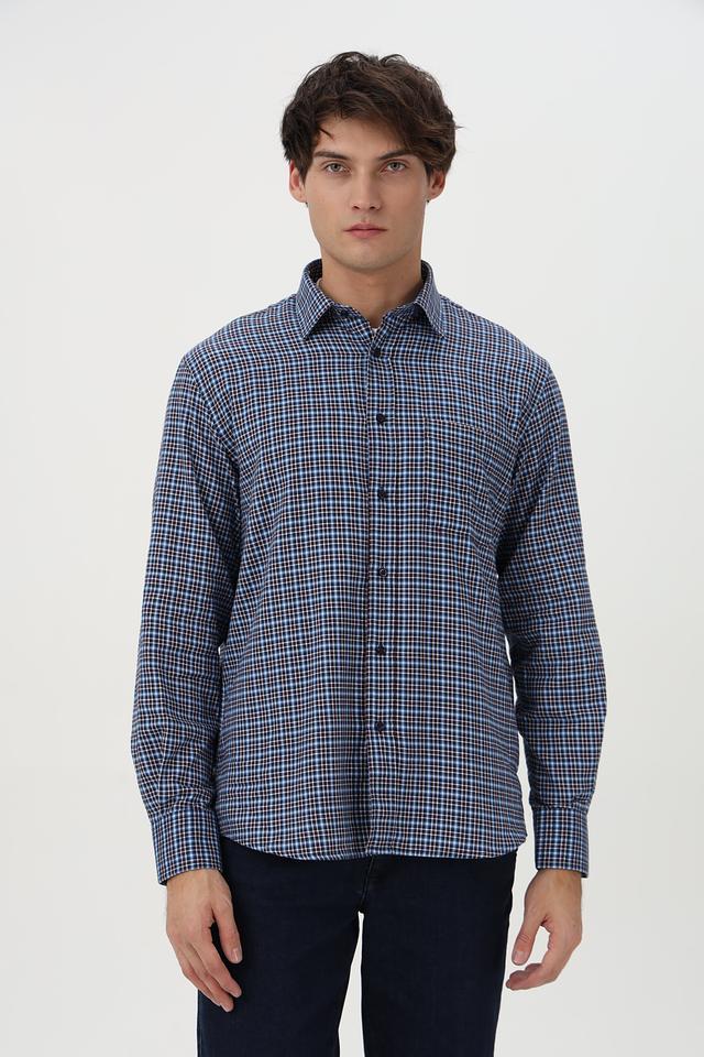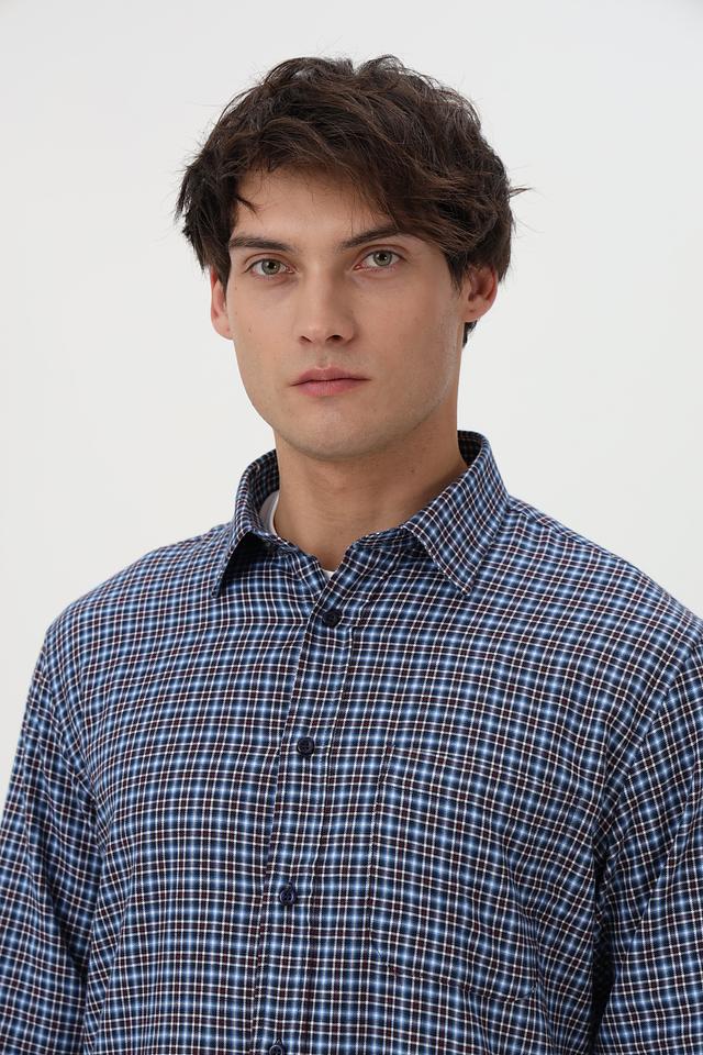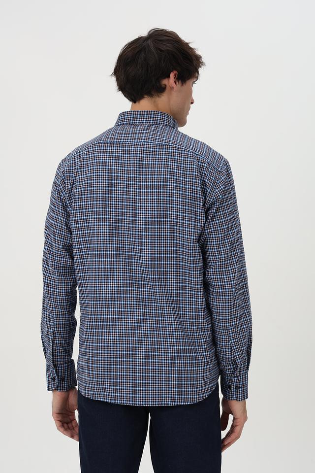 Мужская рубашка с длинным рукавом Sea Barrier синего цвета в клетку. Изготовлена из 100% хлопка, обеспечивающего комфорт и воздухопроницаемость. Классический крой для повседневного использования. Состав: хлопок 100%