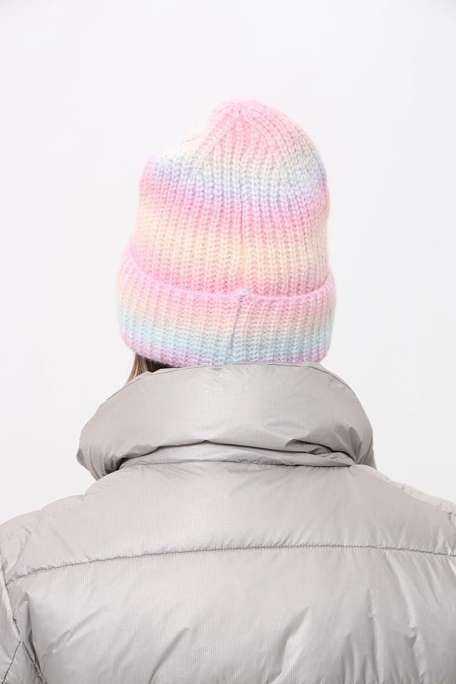 Шапка имеет удобный крой, плотно прилегающий к голове, и выполнена в оригинальном разноцветном дизайне, сочетающем нежные оттенки розового, голубого, желтого и бежевого. Такое сочетание цветов делает эту шапку универсальным аксессуаром, который легко сочетается с различной верхней одеждой.