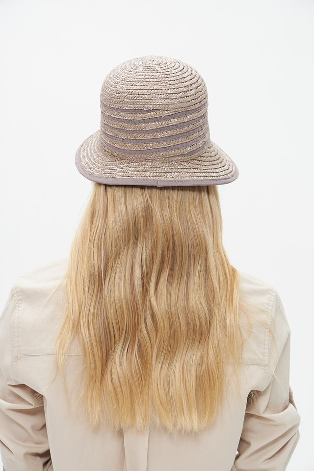 Шляпа имеет классическую форму с небольшими полями. Текстура плетения из соломы придает ей естественный вид. Отличительной особенностью является сочетание бежевых и серых оттенков в плетении, что делает её интересным акцентом в вашем гардеробе.