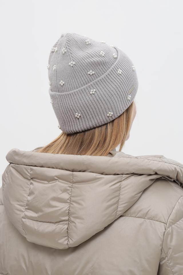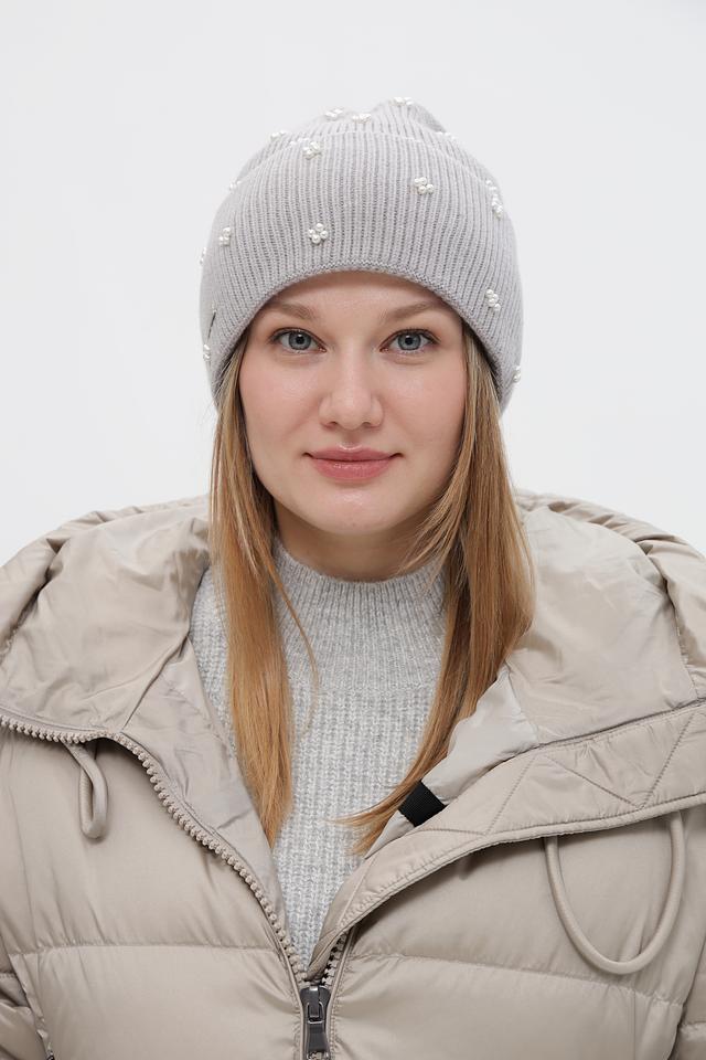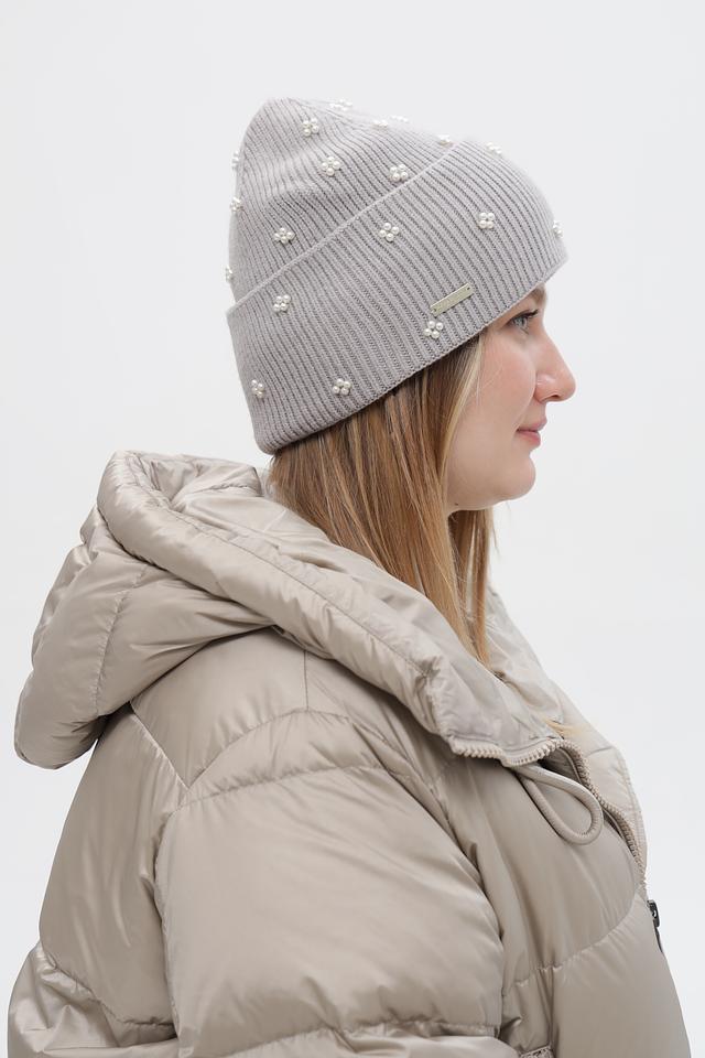 Шапка выполнена из качественной смеси вискозы (50%), полиамида (28%) и полиэстера (22%). Вязаная текстура придает изделию уютный вид, а декор из искусственного жемчуга добавляет элегантности и изысканности.