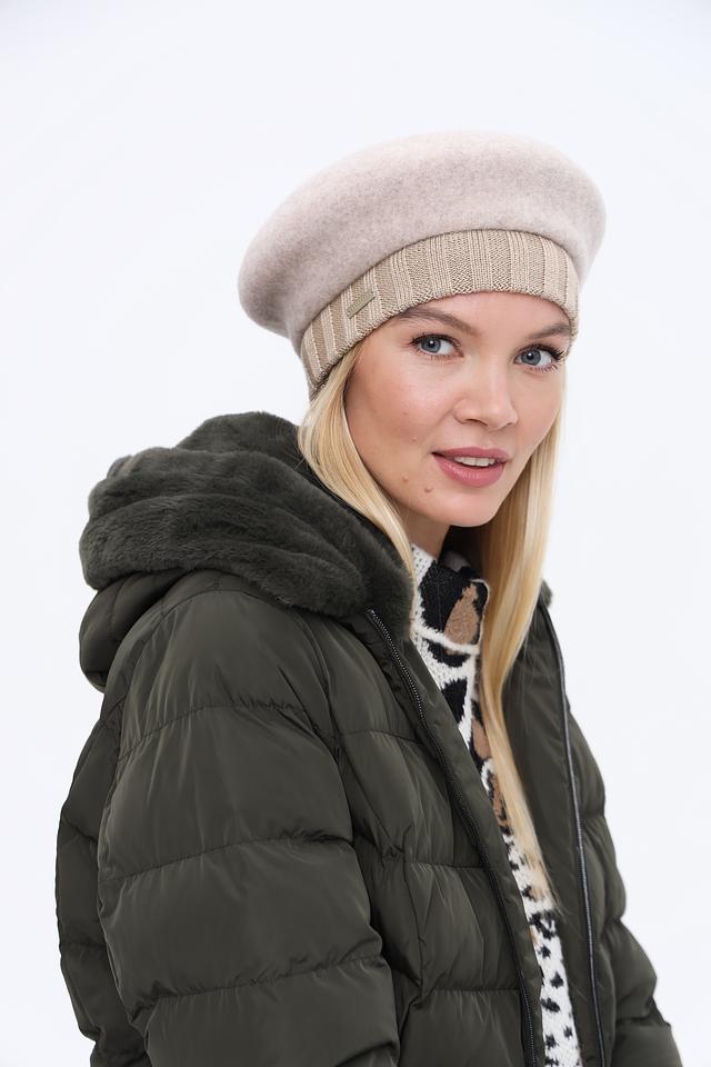 Нежно-бежевый цвет берета легко сочетается с различными оттенками одежды, позволяя создавать разнообразные образы. Вязаный кант добавляет текстуру и визуальный интерес, делая этот аксессуар особенно привлекательным.