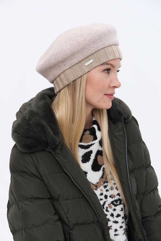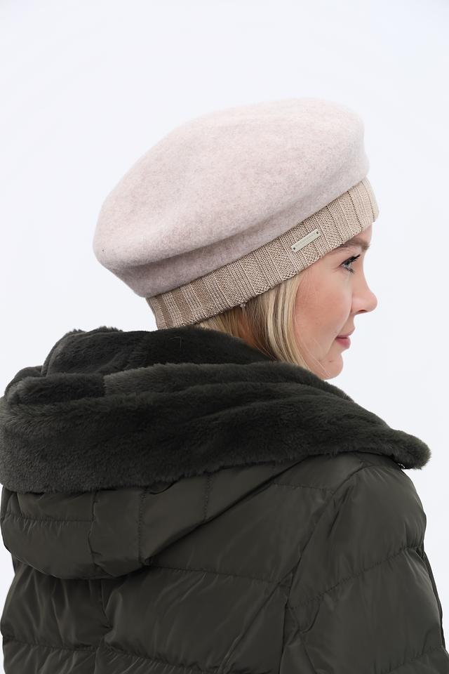 Женский берет Seeberger нежно-бежевого цвета выполнен из 100% шерсти. Модель дополнена вязаным кантом, что придает ей стильный и завершенный вид. Идеальный аксессуар для создания уютного и элегантного образа. Состав: шерсть 100%