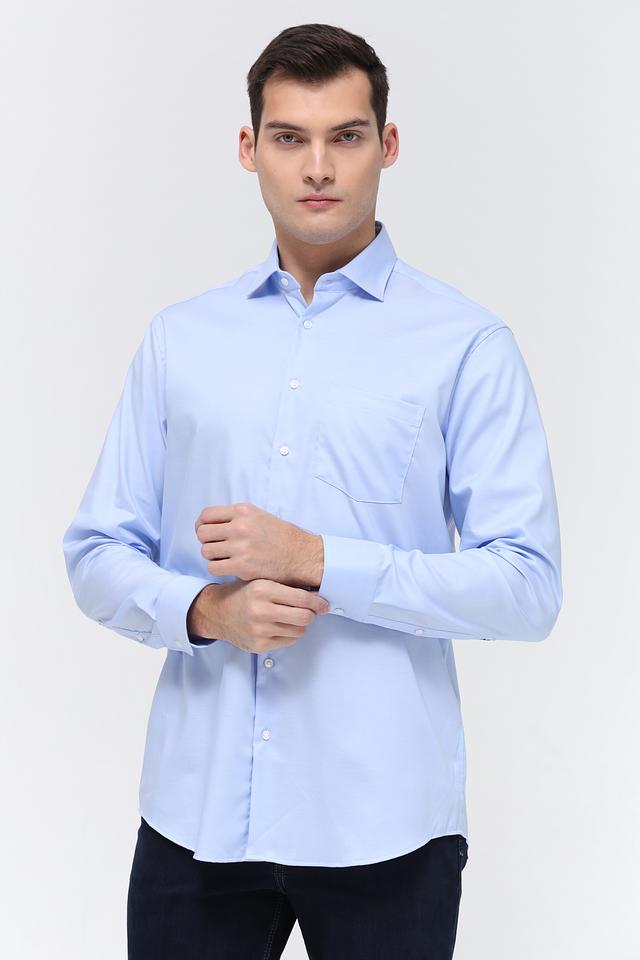Классический крой и голубой цвет делают эту рубашку универсальным элементом гардероба, подходящим для различных случаев – от деловых встреч до повседневной носки.