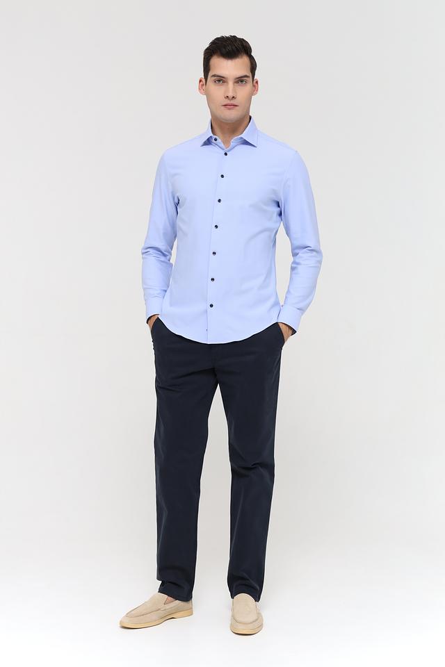 Рубашка изготовлена из смеси хлопка (60%), полиэстера (35%) и эластана (5%). Хлопок обеспечивает комфорт и воздухопроницаемость, полиэстер – износостойкость, а эластан – свободу движений.