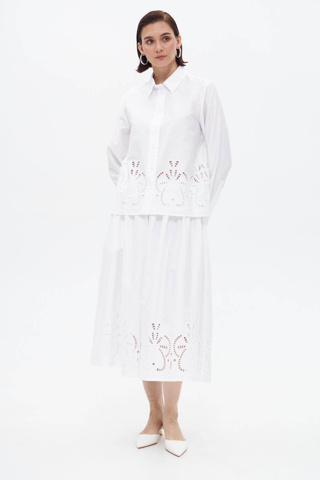 Блуза Seidensticker белая с ажурной вышивкой