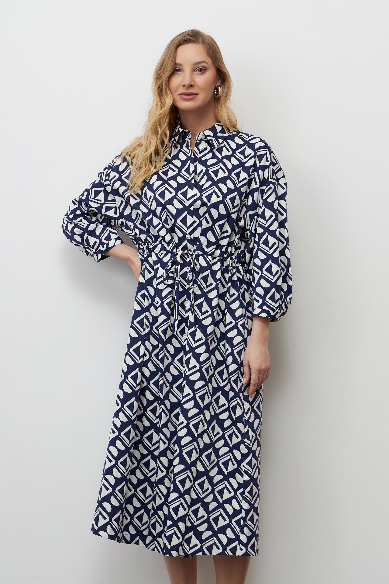 Синее платье рубашка Seidensticker миди с геометрическим принтом