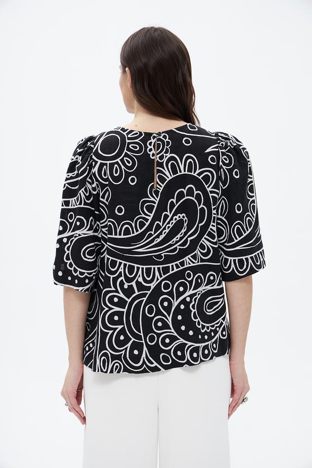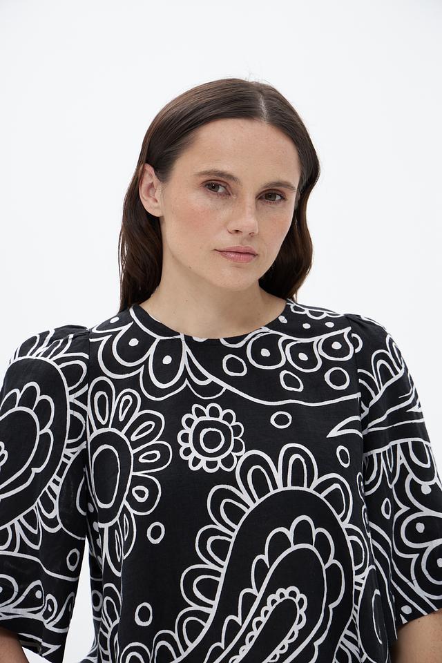 Блузка Seidensticker чёрного цвета с оригинальным геометрическим принтом. Изготовлена из 100% льна, обеспечивающего комфорт и воздухопроницаемость. Состав: лен 100%