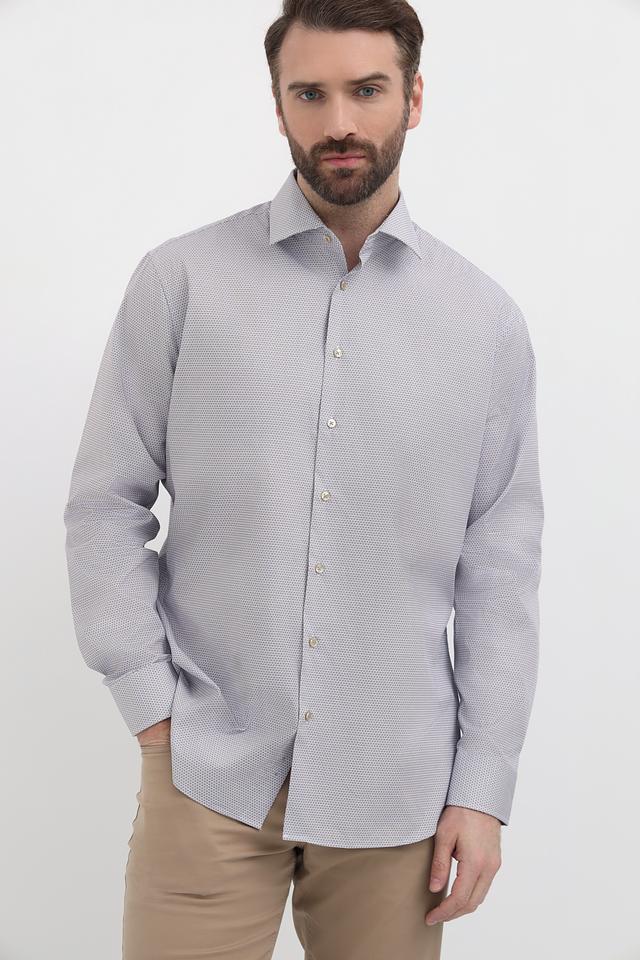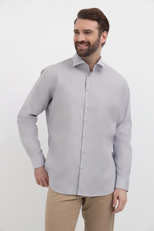 Мужская рубашка Seidensticker серого цвета с мелким геометрическим узором. Изготовлена из 100% хлопка, обеспечивающего комфорт и воздухопроницаемость. Состав: хлопок 100%