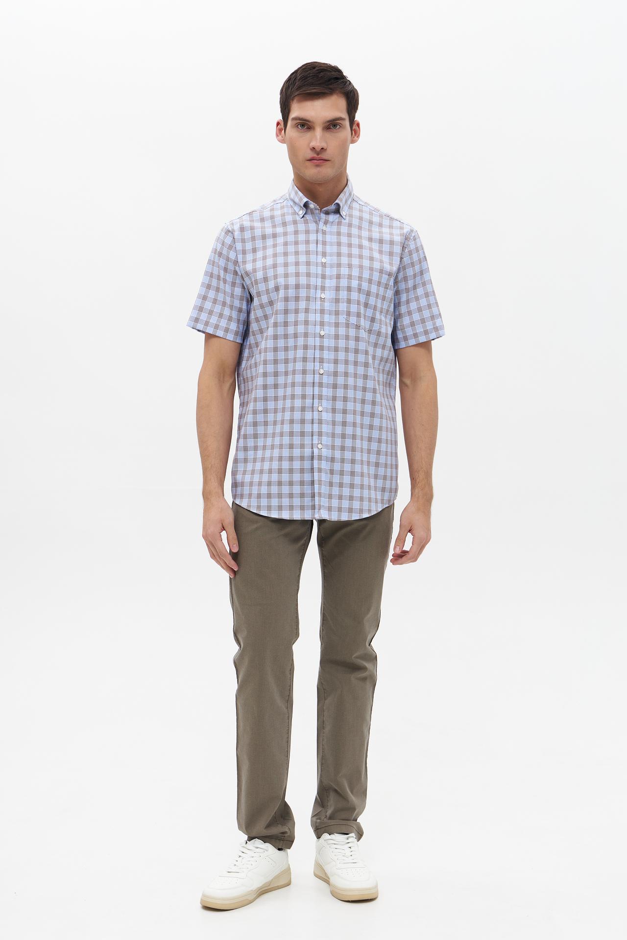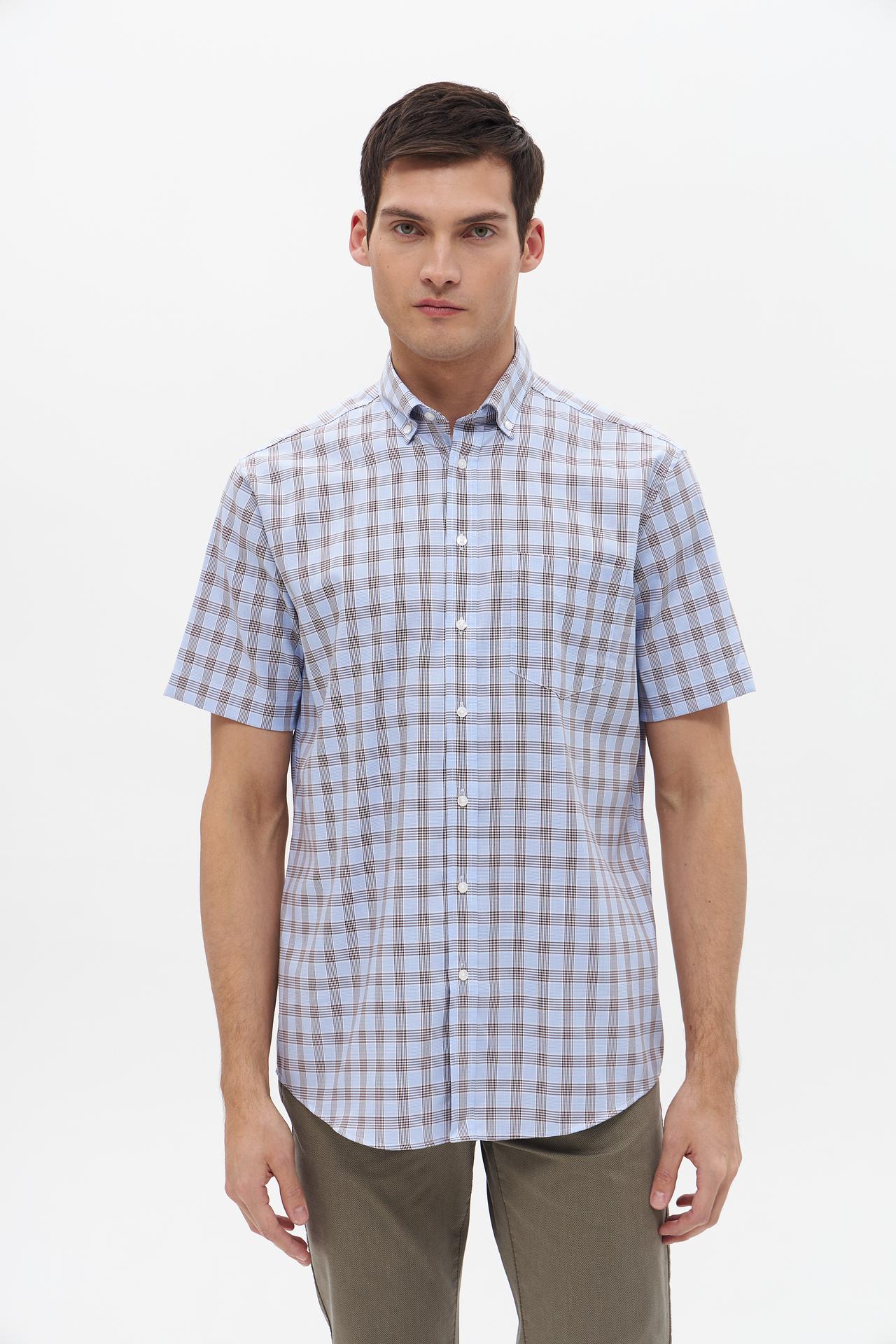 Классическая мужская рубашка с коротким рукавом от Seidensticker, выполненная из 100% хлопка, обеспечит комфорт и стиль в течение всего дня. Приятный к телу материал и элегантный клетчатый узор делают эту рубашку идеальным выбором для создания непринужденного образа. Она легко сочетается с брюками чинос или джинсами.