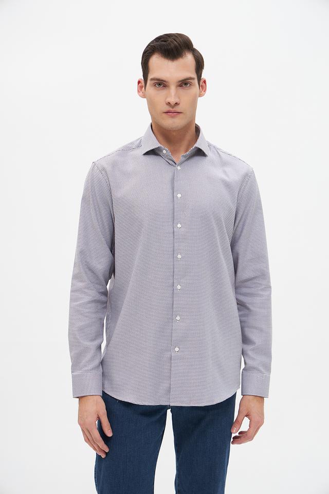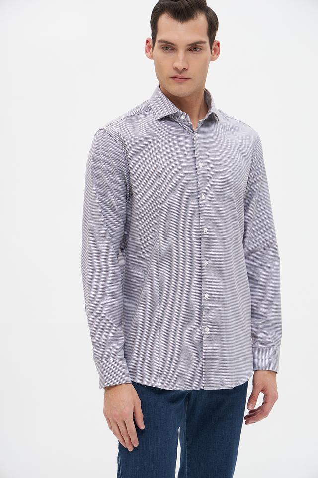 Рубашка оснащена стандартным отложным воротником и застежкой на пуговицы. Длинные рукава с манжетами на пуговицах позволяют регулировать посадку. Эта рубашка идеально подходит для повседневной носки, а также для деловых встреч и особых случаев.