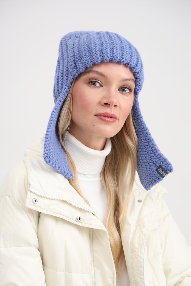 Голубая вязаная шапка Adel с ушами – стильный и тёплый аксессуар для зимнего сезона. Изготовлена из мягкой шерсти и акрила, обеспечивающих комфорт и защиту от холода. Состав: шерсть 50%, акрил 50%