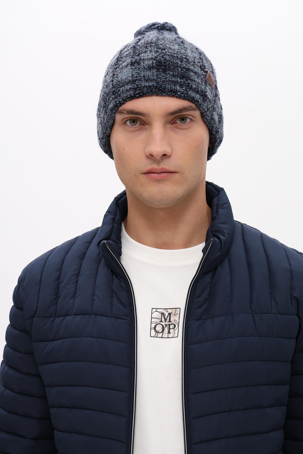 Шапка Marhatter с помпоном, вязаная, синий меланж