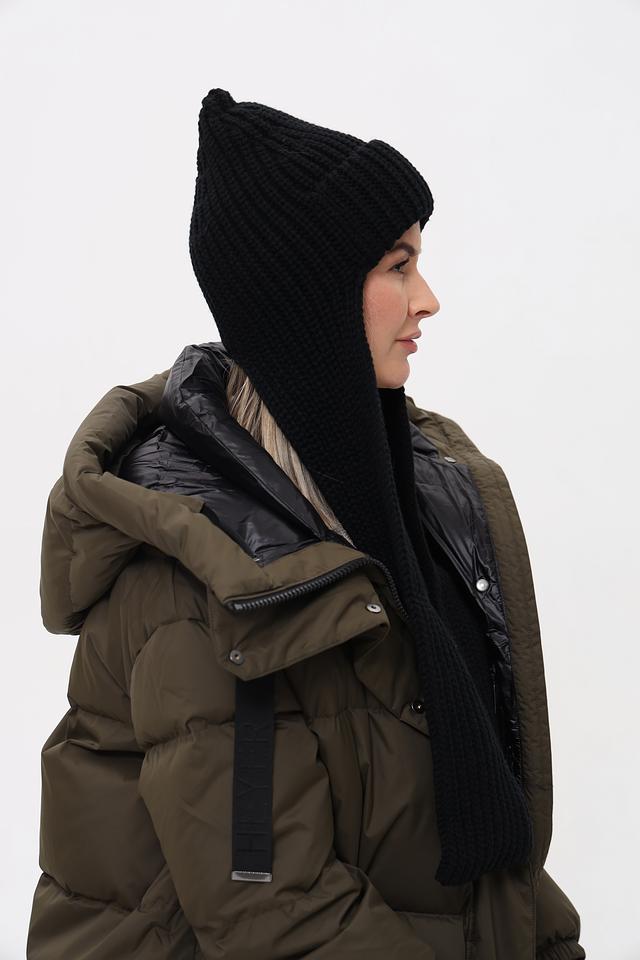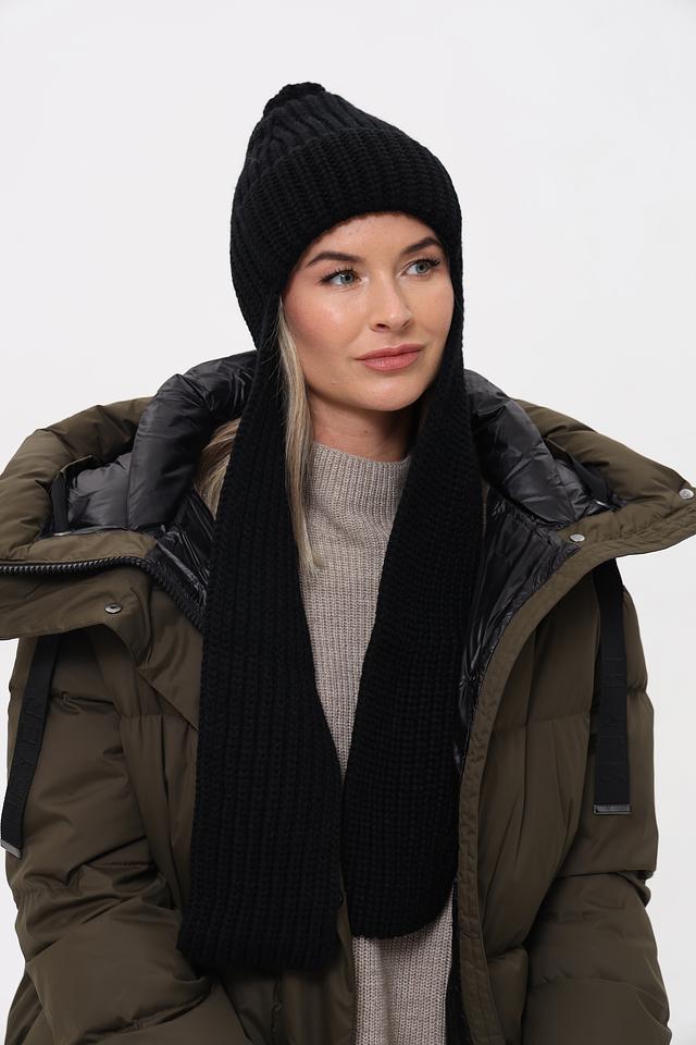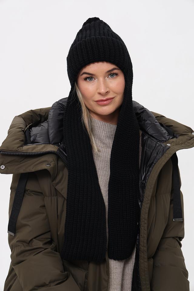 Чёрная шапка Marhatter 2 в 1 с интегрированным шарфом. Изготовлена из акрила и шерсти, обеспечивающих тепло и комфорт в холодную погоду. Состав: акрил 70%, шерсть 30%