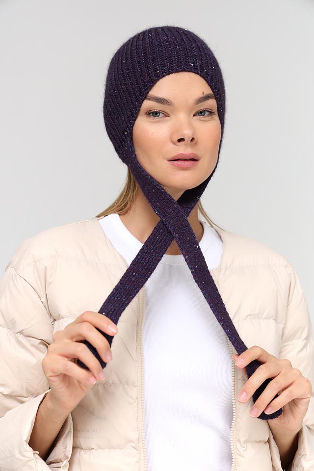 Шапка имеет классическую форму и насыщенный фиолетовый цвет. Оригинальным элементом дизайна являются две длинные косы, свисающие сзади, которые добавляют образу динамичности и индивидуальности.