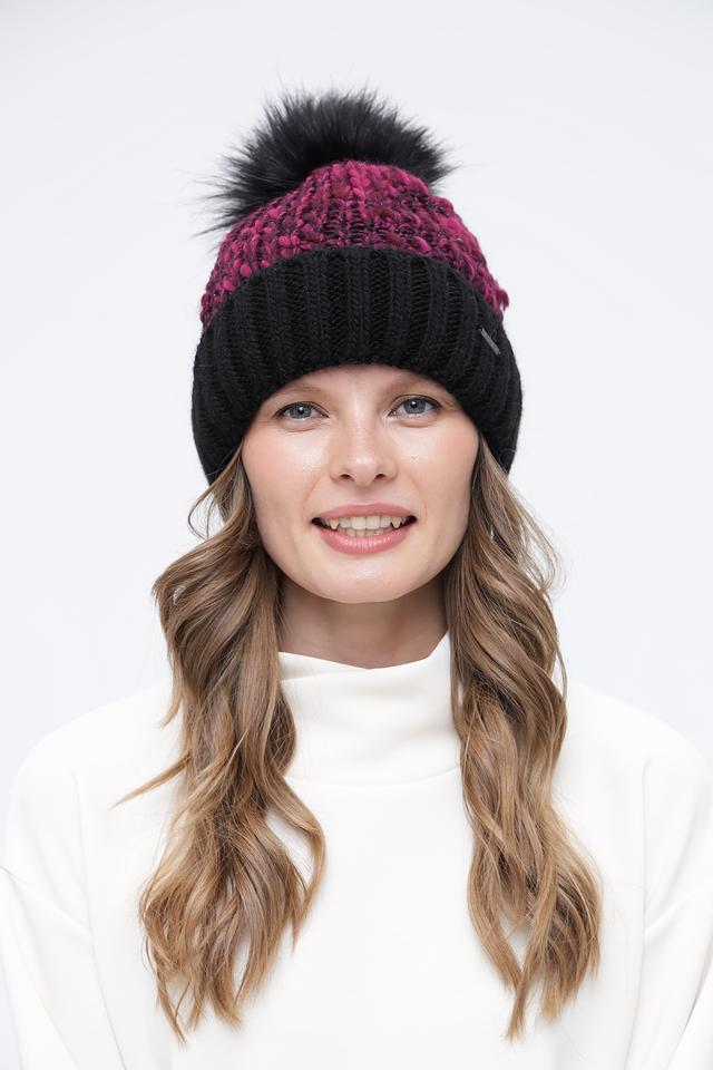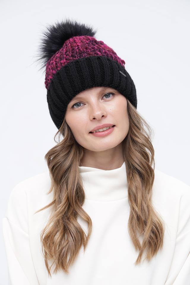 Женская шапка Wegener фуксия и чёрного цвета с помпоном из искусственного меха. Модель выполнена в комбинированной вязке, сочетающей гладкую и фактурную текстуру, что придает ей стильный и современный вид. Состав: полиакрил 72%, шерсть 15%, альпака 9%, полиэстер 3%, полиамид 1%