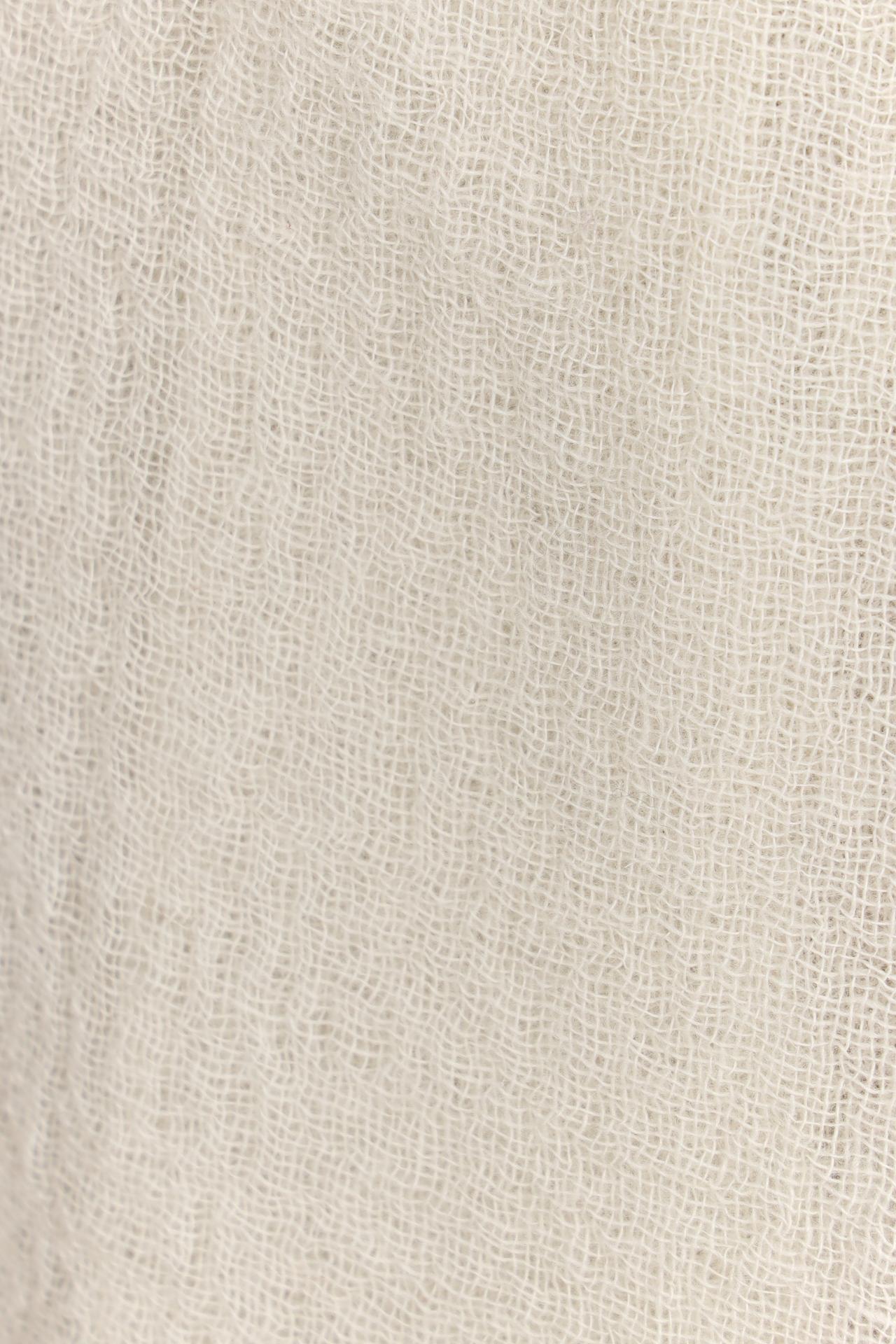 - Дизайн: Классический шарф с бахромой по краям. Простой, но изысканный дизайн делает его универсальным аксессуаром, подходящим к любому стилю одежды.