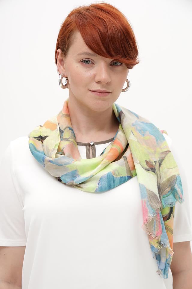 Представляем вашему вниманию шарф от бренда Fraas, выполненный в нежной мятной цветовой гамме и украшенный ярким цветочным принтом.