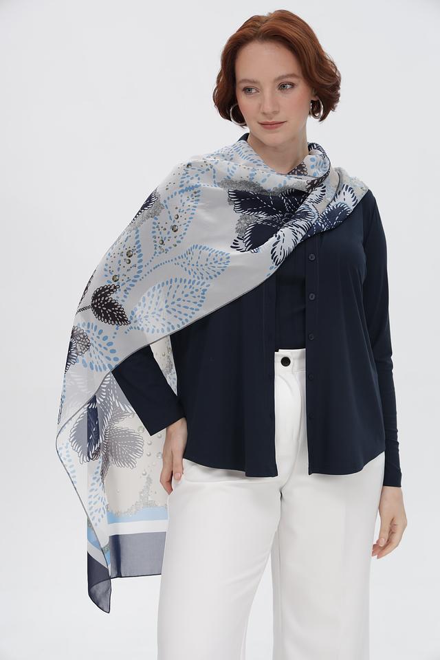 Основой изделия послужил 100% полиэстер, что обеспечивает легкость, мягкость и практичность в носке. Шарф имеет прямоугольную форму и достаточную длину, позволяющую экспериментировать с различными способами драпировки.