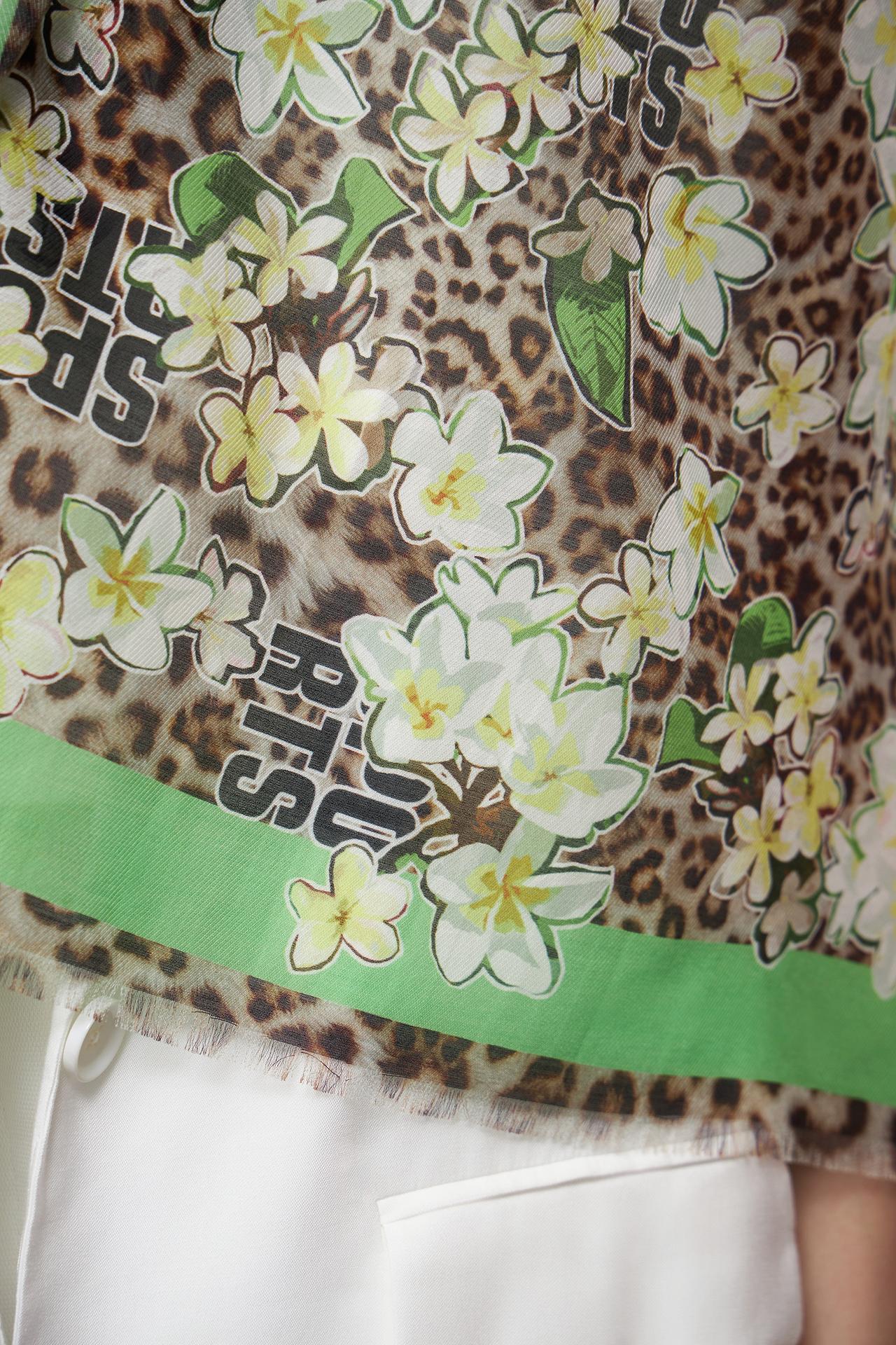 Шарф Marc Cain, цветочный леопардовый принт, зеленый кант