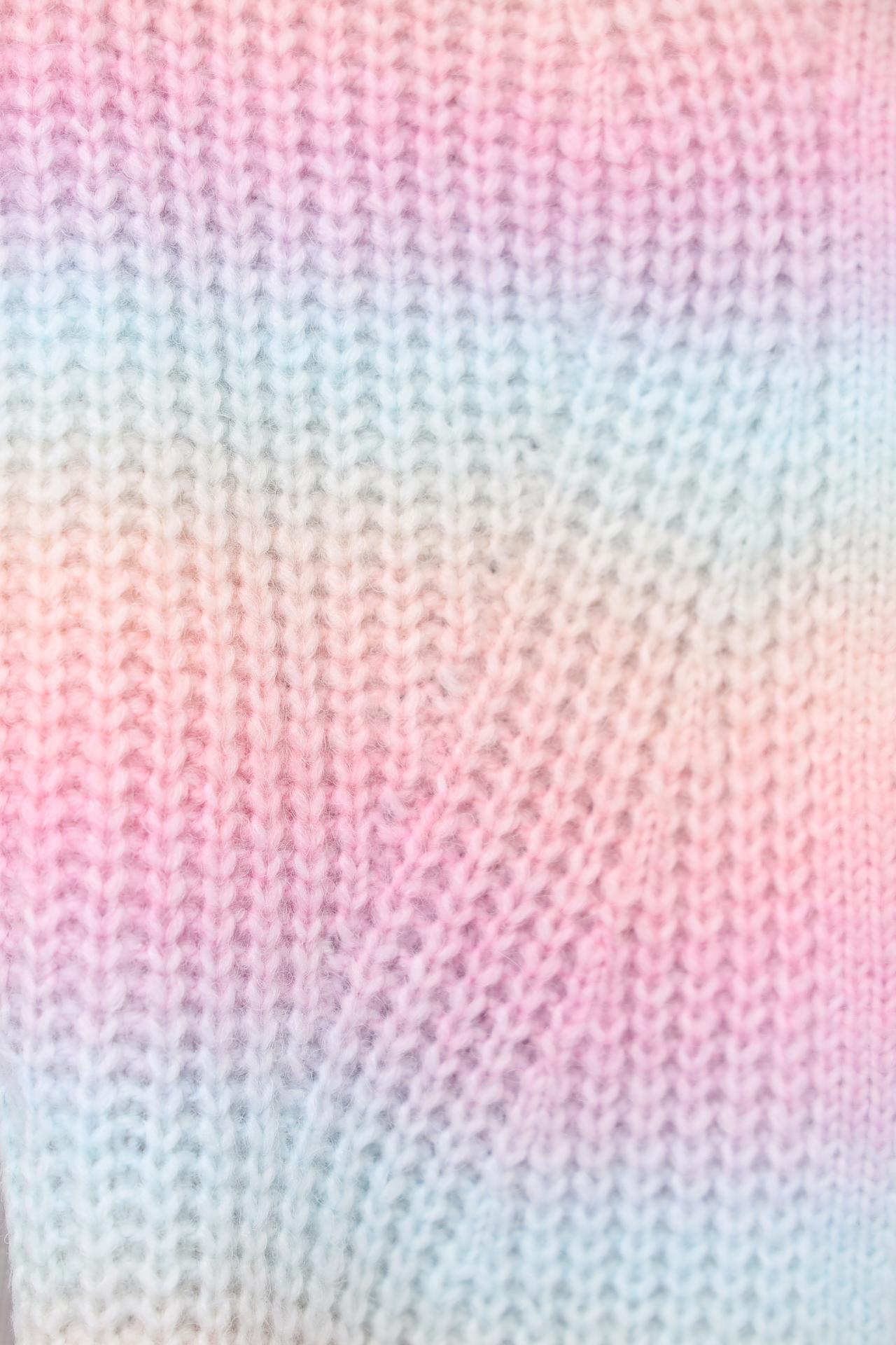 Шарф прекрасно согреет вас в холодную погоду и станет отличным акцентом в вашем образе. Нежный пастельный градиент придаёт шарму и лёгкости. Пряжа высокого качества гарантирует долговечность изделия и сохранение формы после стирки.