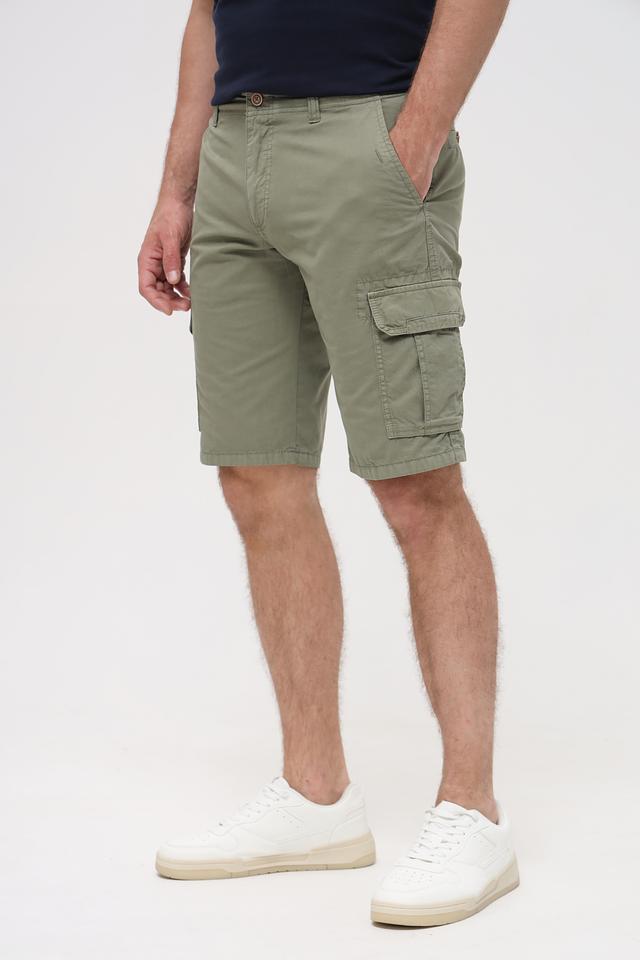 Мужские шорты Bugatti цвета хаки — удобная и практичная модель на каждый день. Шорты прямого кроя с карманами и поясным ремнем станут отличным дополнением к вашему летнему гардеробу. Состав: хлопок 100%