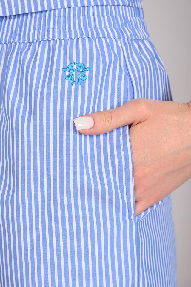 Женские шорты Silvian Heach голубого цвета в бело-голубую полоску — стильный и комфортный выбор для летнего гардероба. Модель выполнена из 100% хлопка, имеет удобный эластичный пояс и боковые карманы. Состав: хлопок 100%