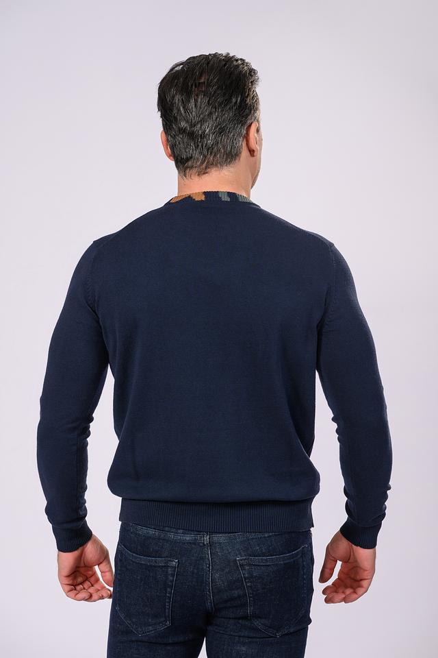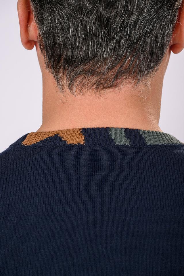 Мужской джемпер Harmont & Blaine тёмно-синего цвета с круглым вырезом и контрастной горловиной. Изготовлен из высококачественного хлопка с добавлением шерсти для мягкости и тепла. Отличается стильным дизайном и удобной посадкой. Состав: хлопок 60%, шерсть 40%