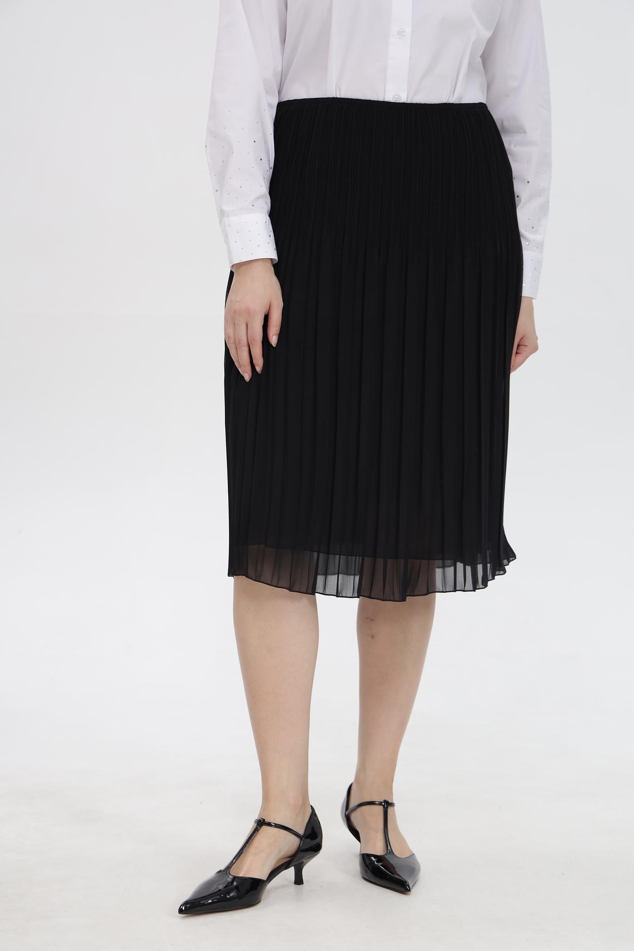 - Дизайн: Плиссированная юбка средней длины с элегантным черным цветом.