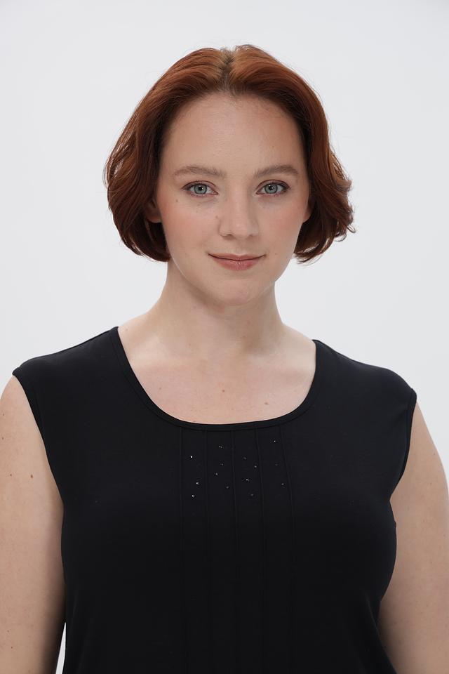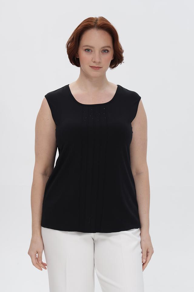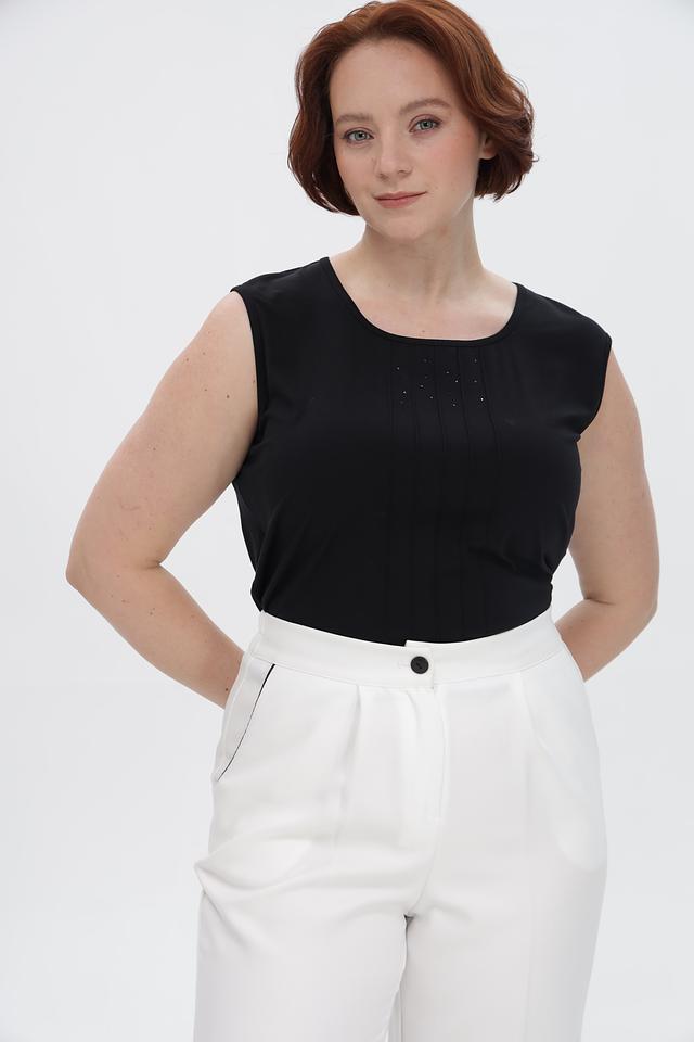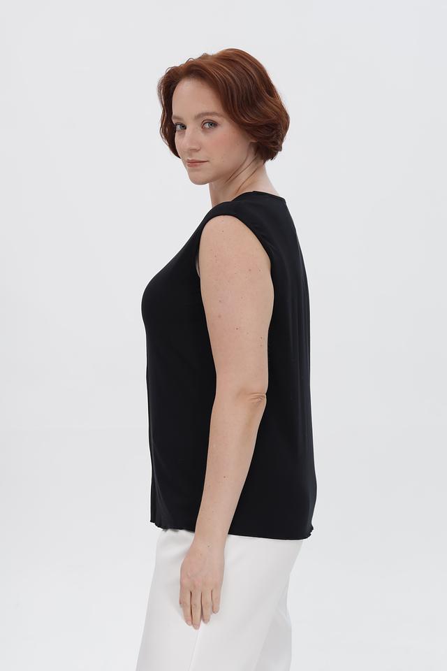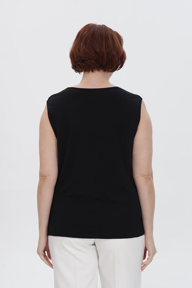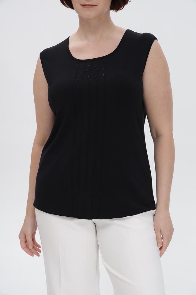 Чёрный топ Sommer mann с округлым вырезом и декоративной отделкой. Изготовлен из вискозы с добавлением эластана, обеспечивающего комфортную посадку. Идеально подходит для создания элегантных образов. Состав: вискоза 93%, эластан 7%