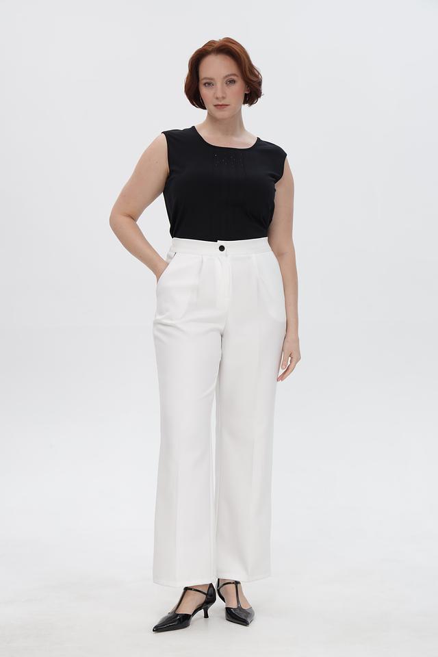 Модель имеет округлый вырез горловины и широкие бретельки, обеспечивающие комфортную посадку. Передняя часть топа украшена декоративной отделкой, добавляющей образу изысканность.