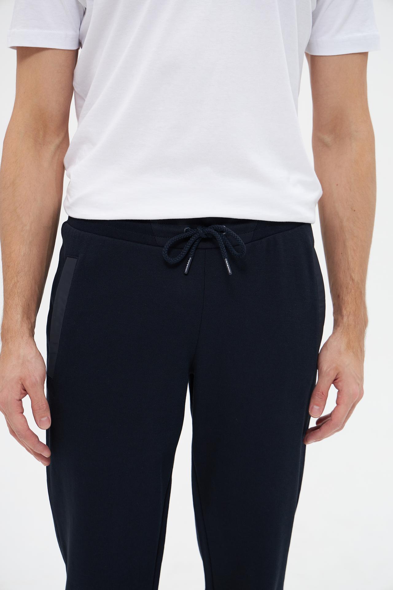 Изготовлены из смеси 6% эластана, 47% хлопка и 47% полиэстера, обеспечивающей идеальный баланс между эластичностью, мягкостью и прочностью. Брюки прекрасно садятся по фигуре, не сковывая движений. Тёмно-синий цвет добавляет элегантности и универсальности, позволяя легко сочетать их с различными элементами гардероба.