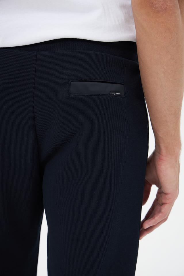 Мужские спортивные брюки Bugatti тёмно-синего цвета, выполнены из мягкого и комфортного трикотажа с добавлением хлопка, полиэстера и эластана. Идеальный выбор для активного отдыха и повседневной носки. Состав: хлопок 47%, полиэстер 47%, эластан 6%