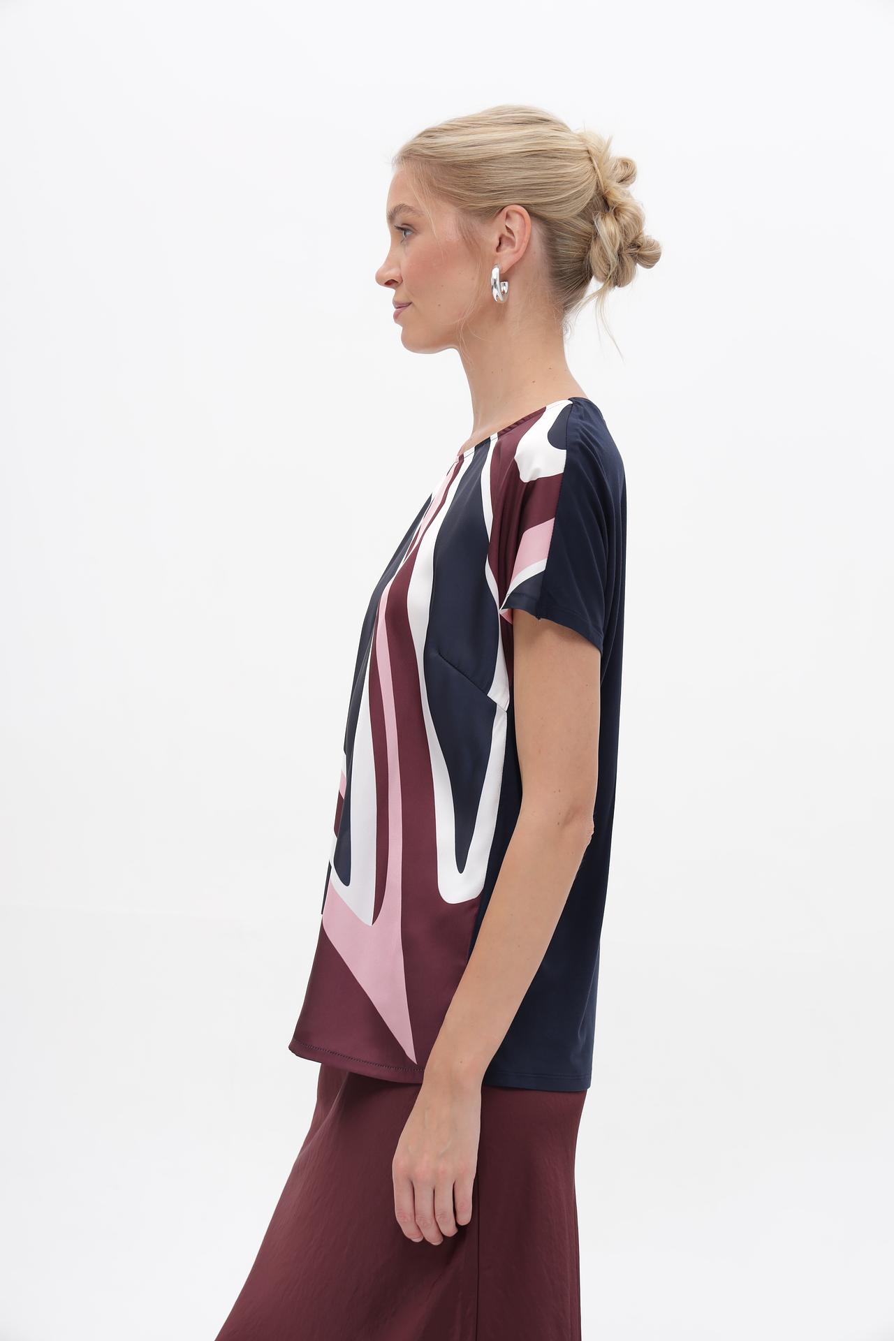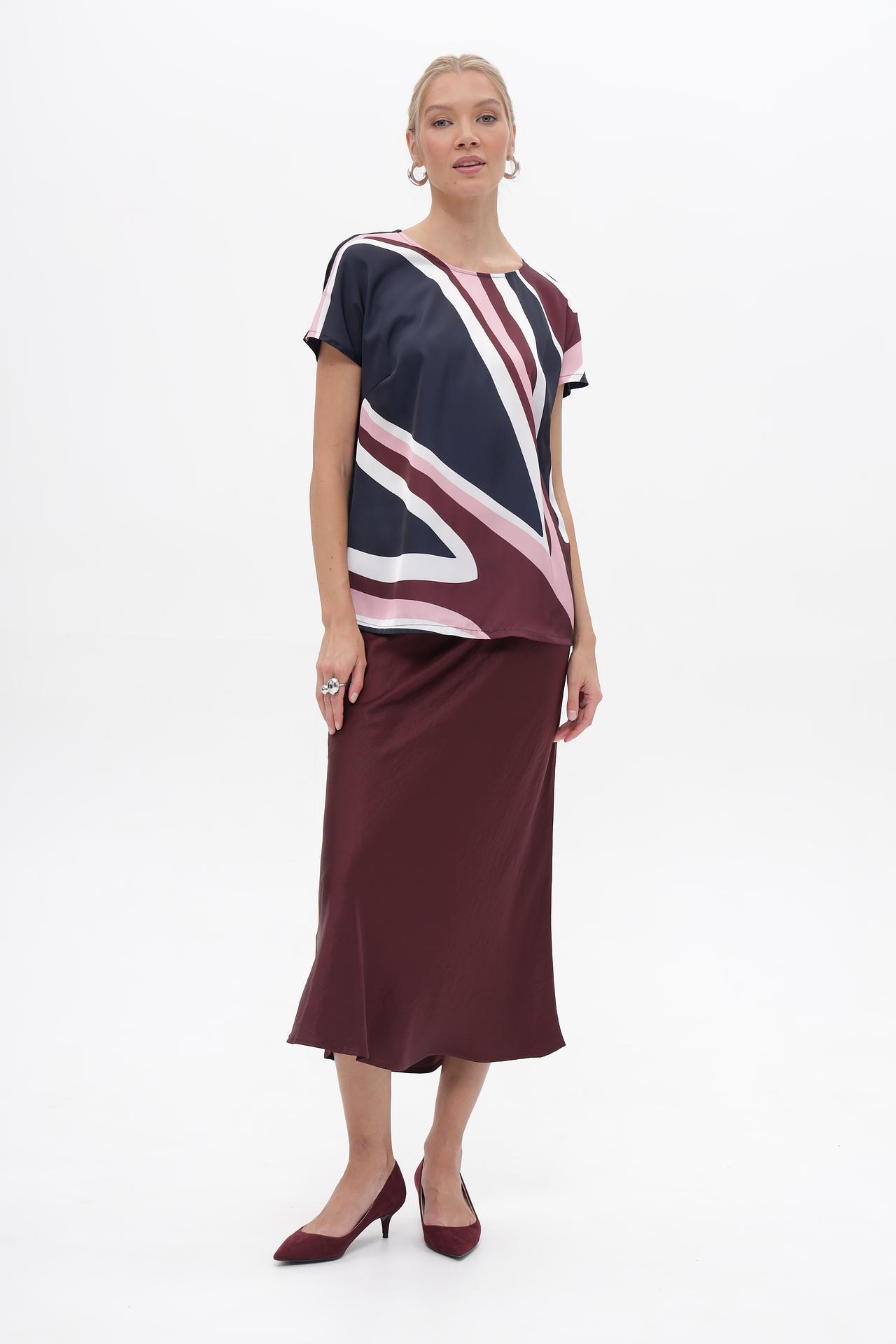 - Стильный дизайн. Геометрический принт делает эту блузу модной и актуальной, позволяя создавать разнообразные образы.