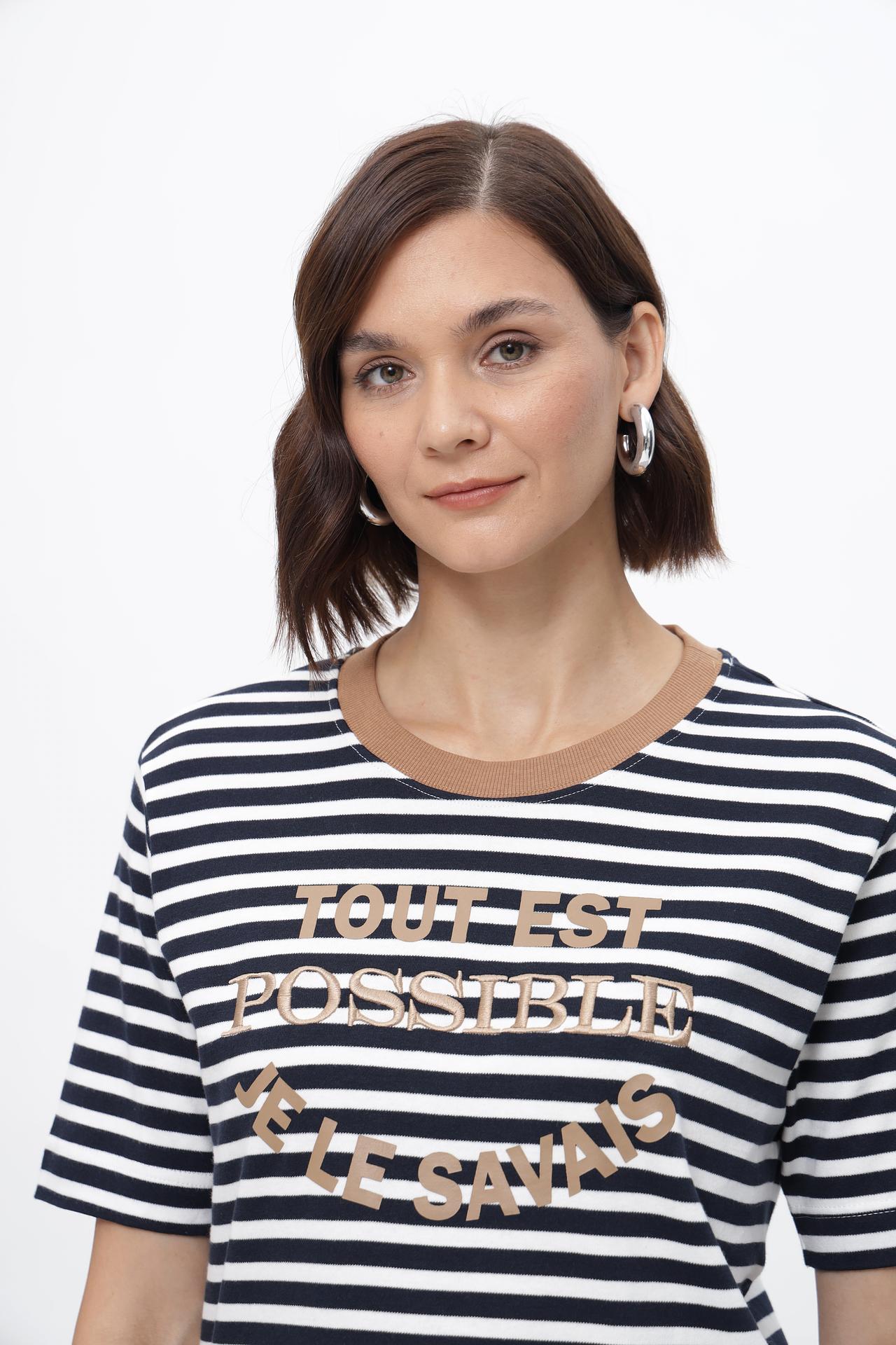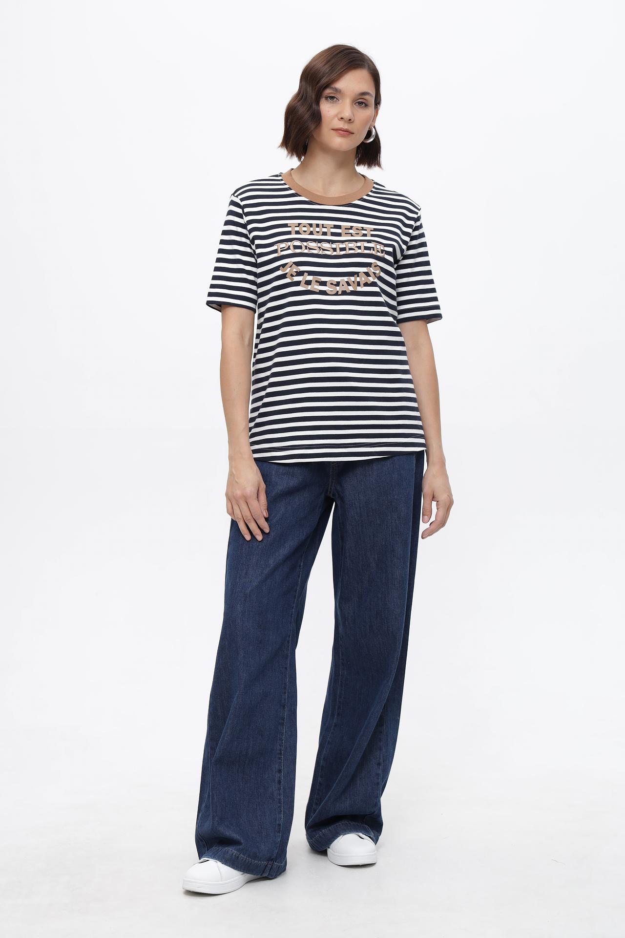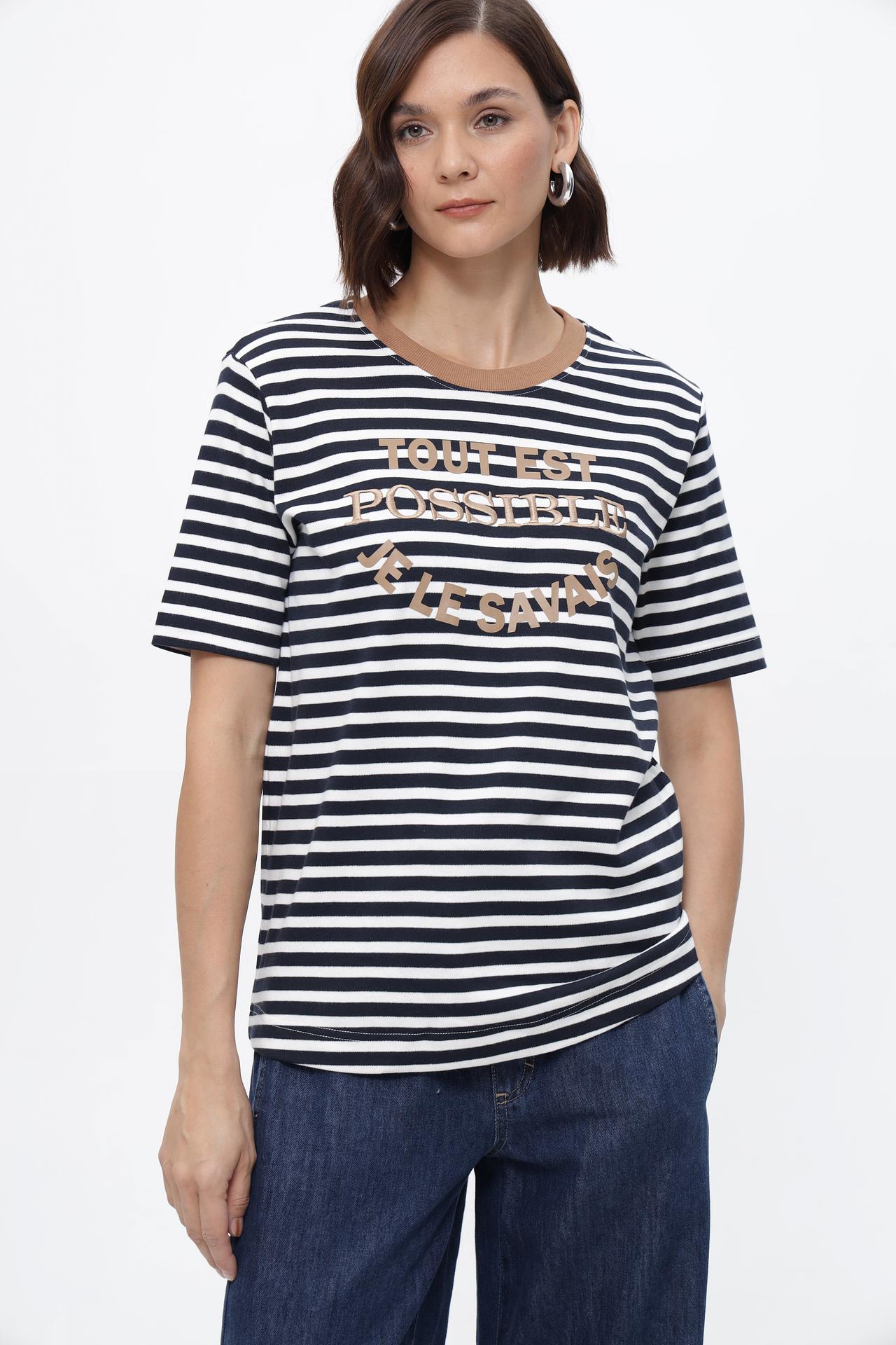 - Универсальный дизайн: Классический круглый вырез и короткий рукав подходят для любого типа фигуры и легко сочетаются с различными элементами одежды.