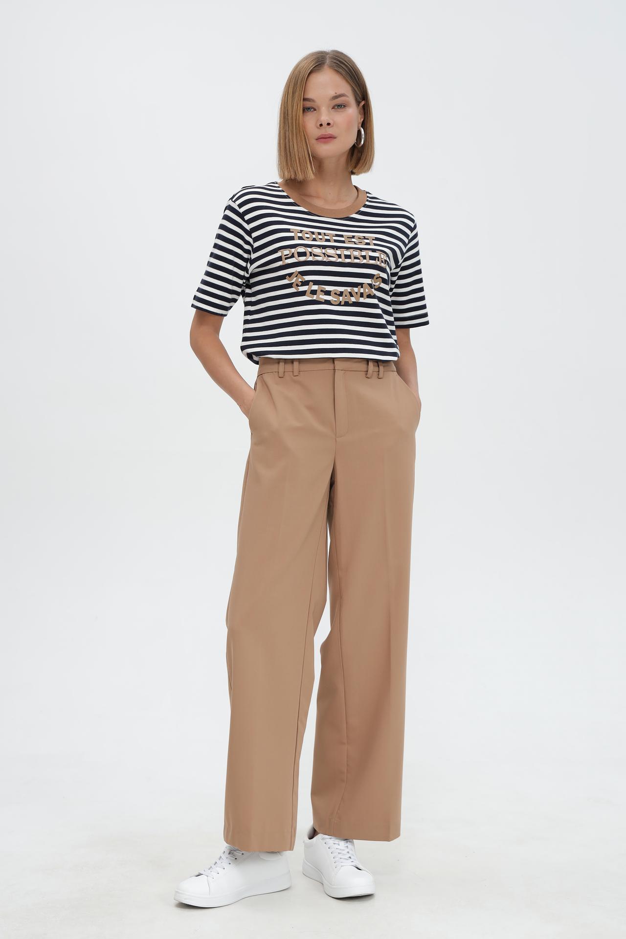 - Комфорт: Благодаря добавлению эластана брюки не сковывают движений и сохраняют форму. Полиэстер и вискоза обеспечивают воздухопроницаемость и приятные ощущения при носке.