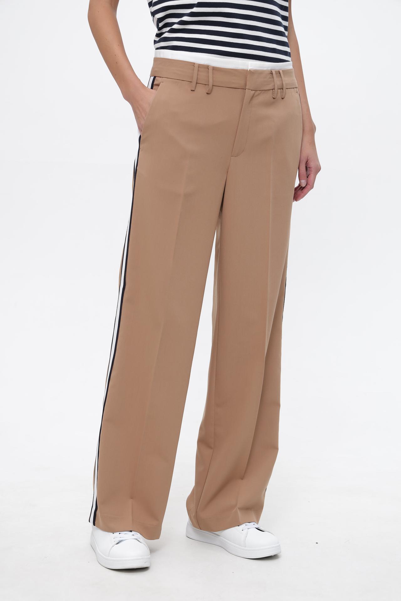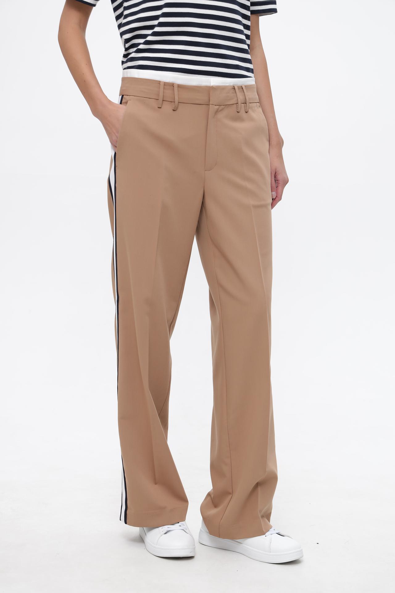 - Дизайн: Классический крой с широкими брючинами и контрастными лампасами создает модный силуэт и придает образу индивидуальность.
