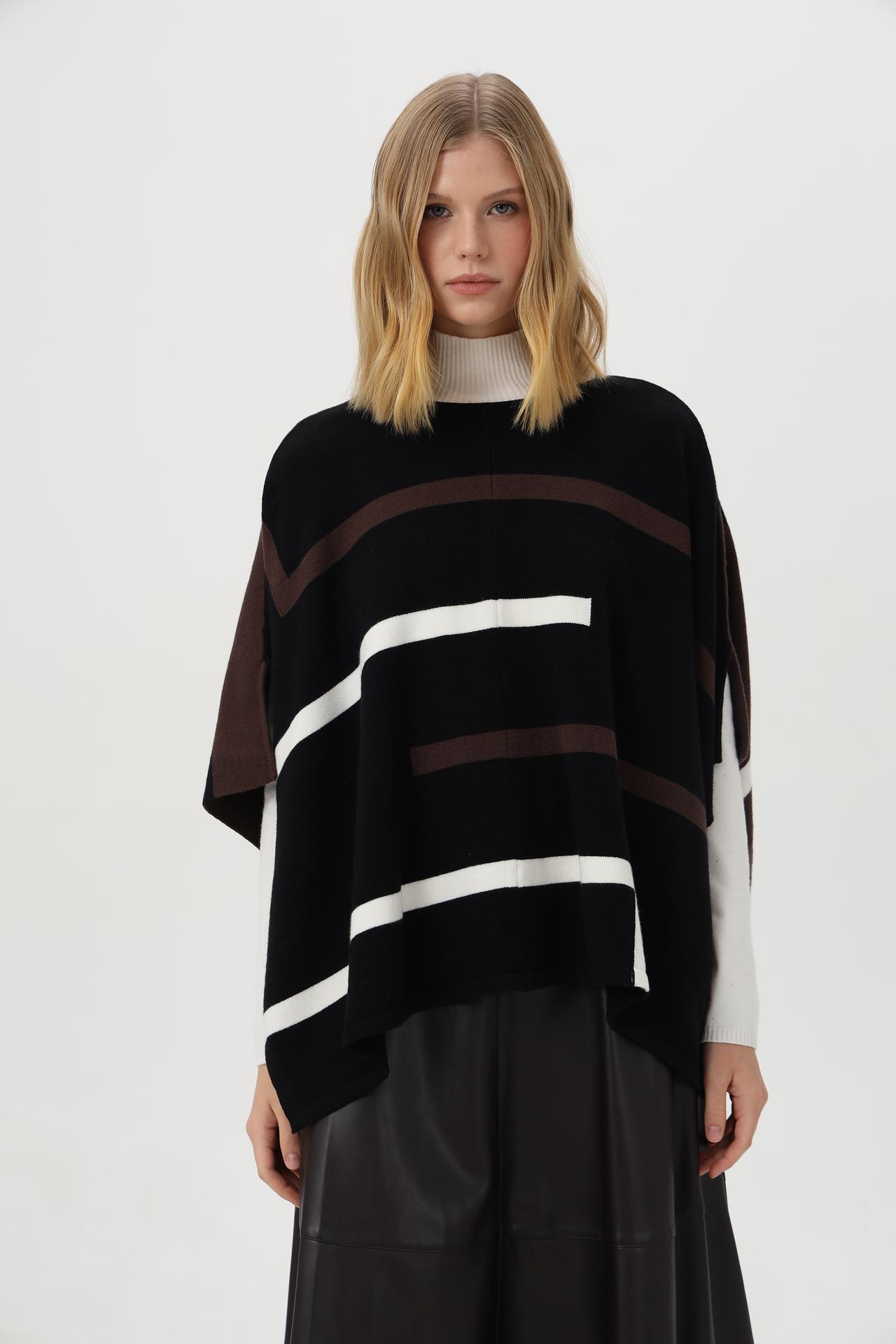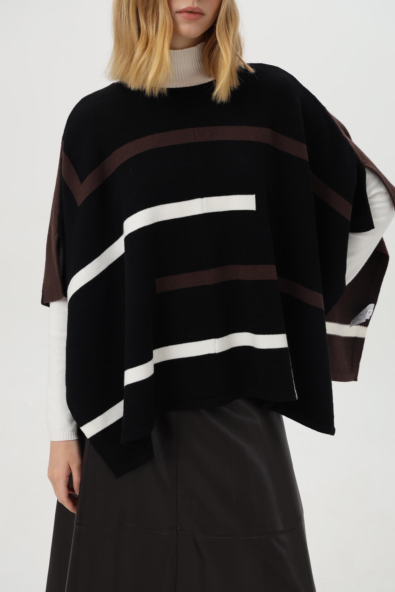 Стильное пончо Steilmann станет эффектным дополнением вашего гардероба. Современный дизайн с геометрическим принтом в виде полос делает эту модель универсальной для создания разнообразных образов. Пончо отлично сочетается как с повседневной, так и с более элегантной одеждой, добавляя нотку изысканности.