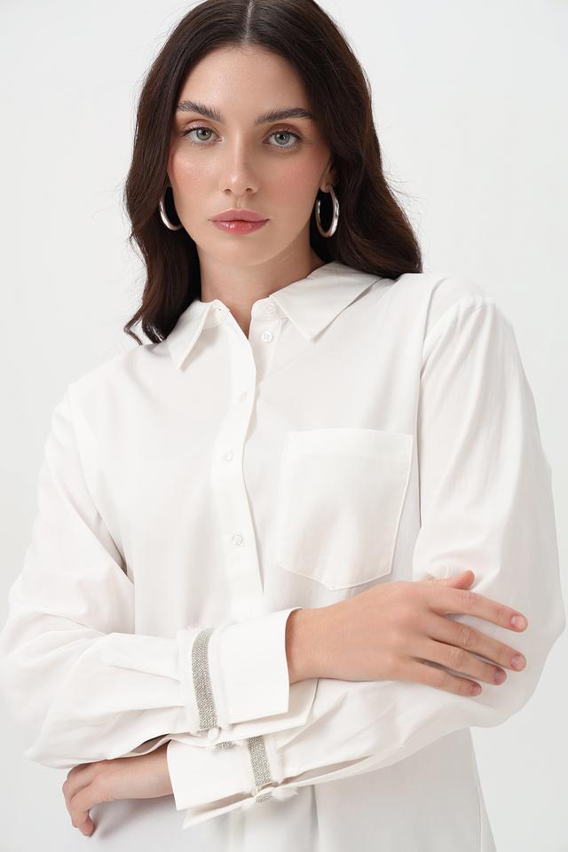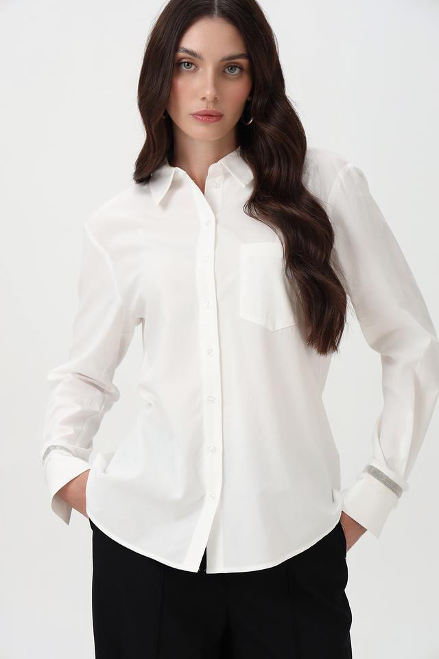 Белая рубашка Steilmann из хлопка и модала с длинным рукавом, декорированная серой полоской на манжетах. Классический крой и натуральный состав обеспечивают комфорт и элегантный вид. Состав: хлопок 50%, модал 50%