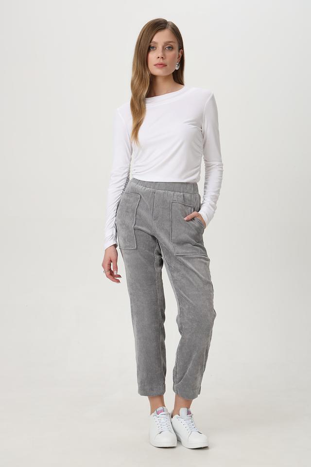 Пояс на резинке обеспечивает комфортную посадку по фигуре, а боковые и задние карманы добавляют функциональности. Брюки изготовлены из полиэстера (86%) с добавлением эластана (2%) и полиамида (12%), что делает их приятными на ощупь и износостойкими.