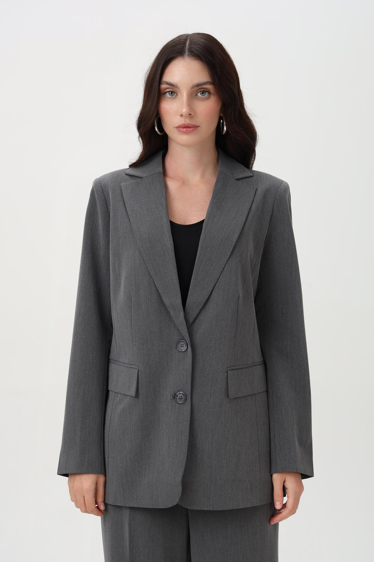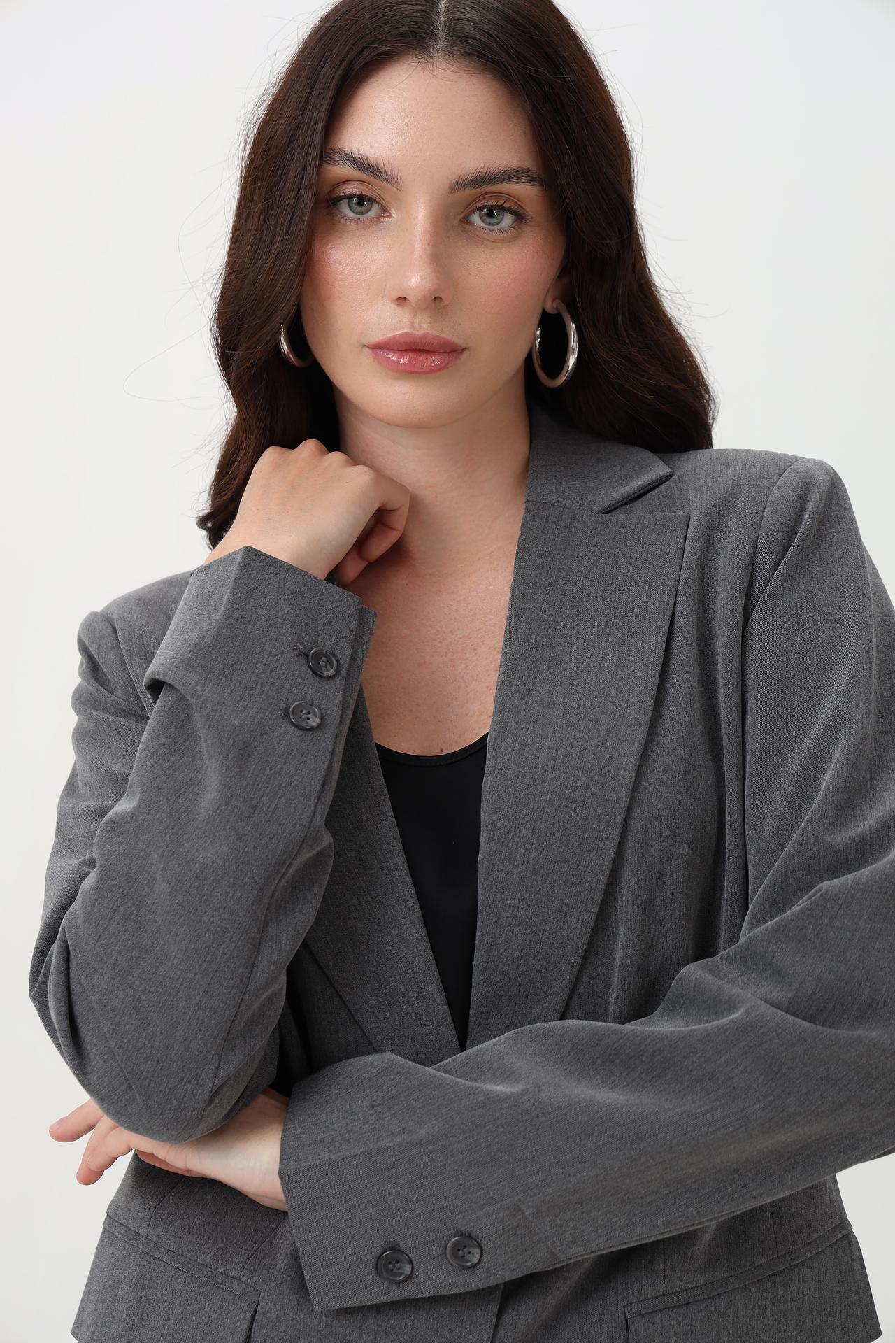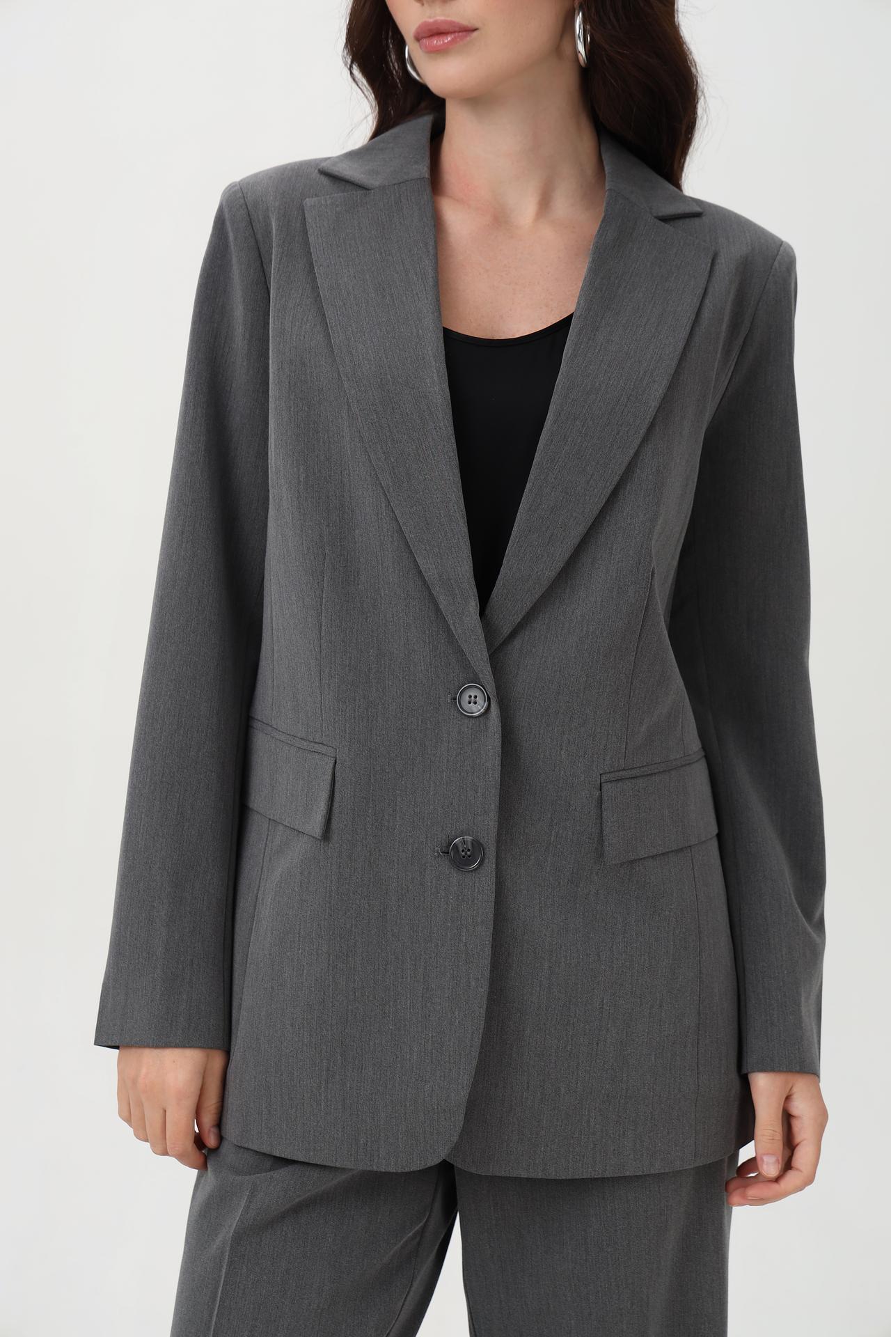 - Дизайн: Классический прямой крой с двумя пуговицами спереди и двумя функциональными карманами. Отложной воротник и лацканы создают элегантный силуэт.
