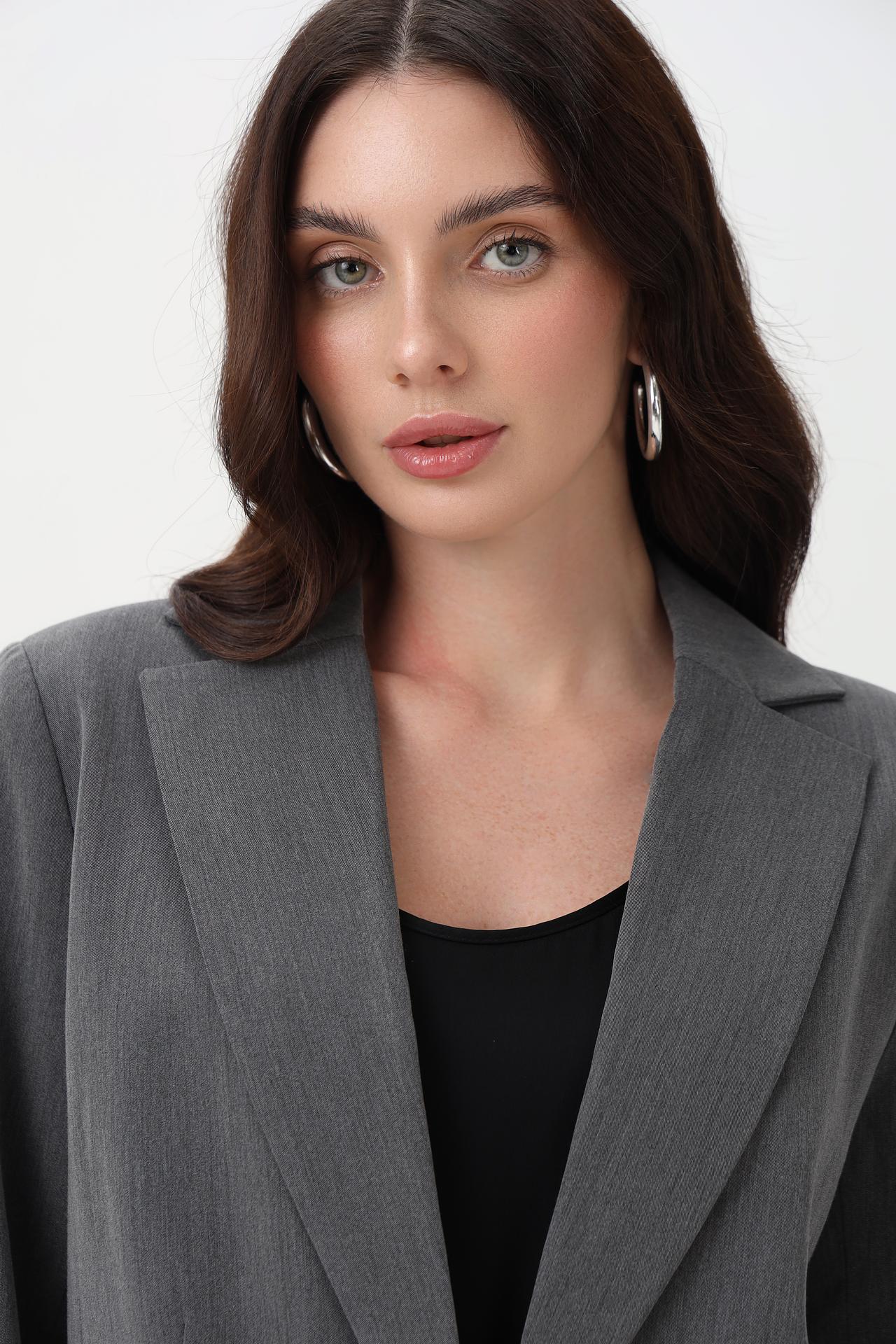 - Универсальность: Жакет легко сочетается с брюками, юбками и платьями, позволяя создавать разнообразные стильные ансамбли для офиса, деловых встреч или вечерних выходов.