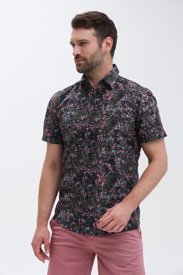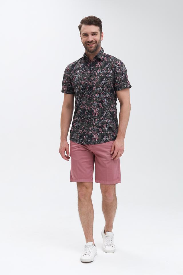 Мужская рубашка Strellson с коротким рукавом, выполнена в чёрном цвете с цветочным принтом. Изготовлена из хлопка и луоселла, обеспечивающих комфорт и воздухопроницаемость. Состав: хлопок 58%, луоселл 42%