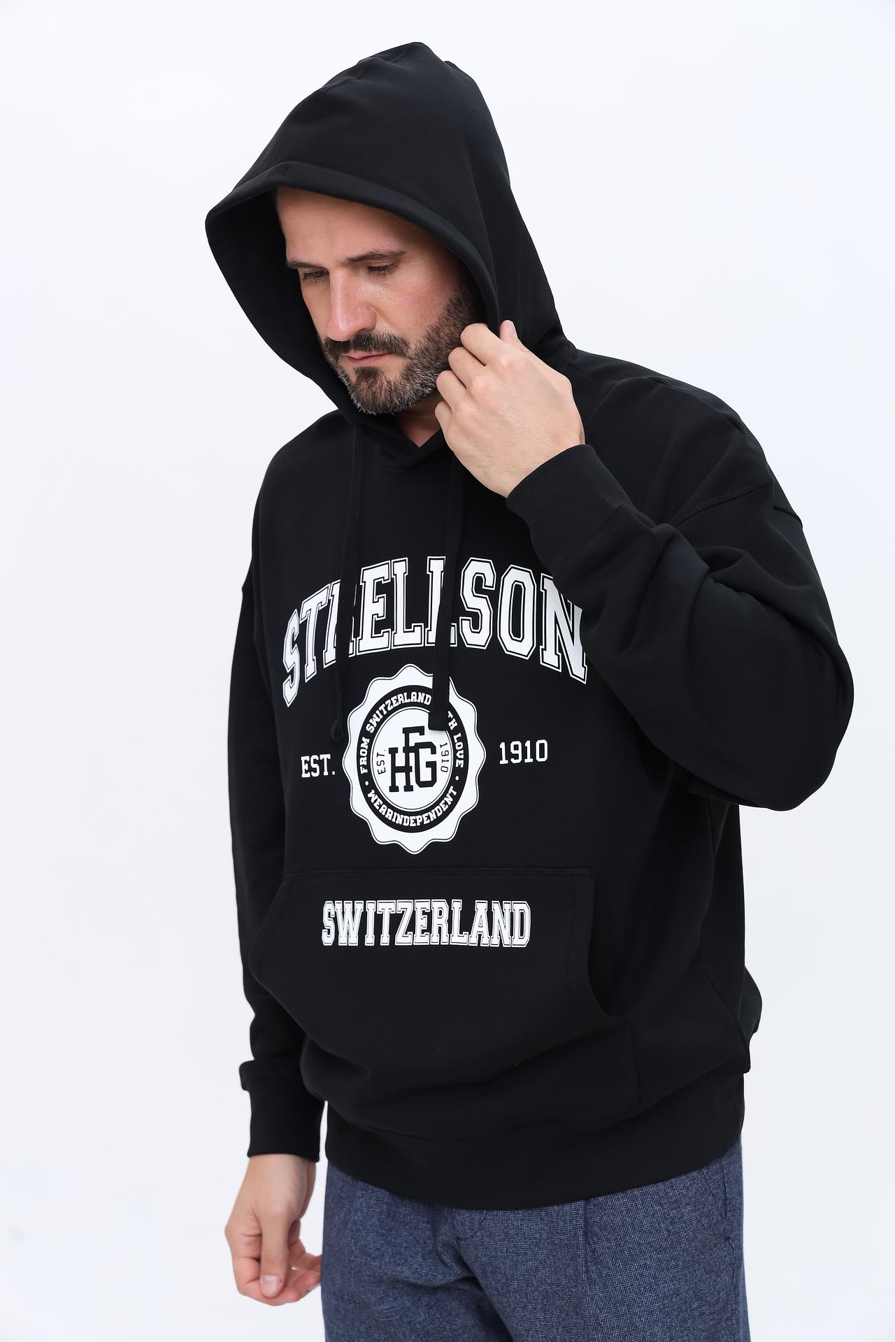 Стильная толстовка Strellson выполнена из 100% хлопка, что обеспечивает исключительный комфорт и воздухопроницаемость. Классический черный цвет и лаконичный дизайн делают ее универсальным элементом гардероба. На груди расположен крупный белоснежный принт с названием бренда и годом основания, подчеркивающий статус и индивидуальность владельца.