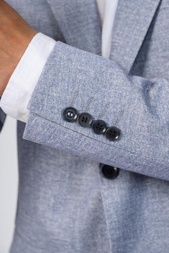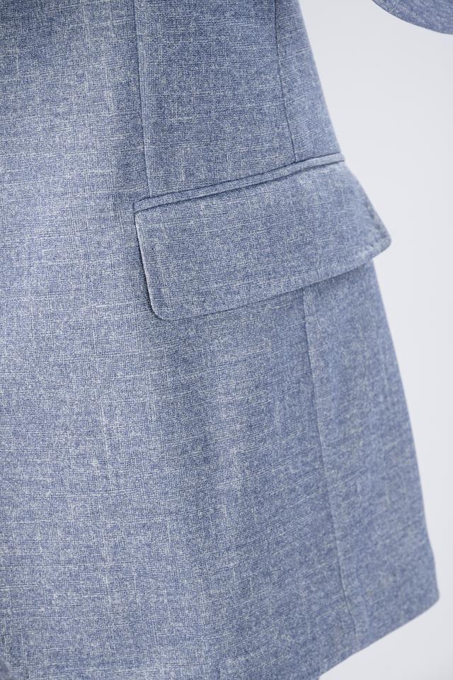 Текстурированная ткань придает пиджаку особый шарм и делает его более интересным. Застежка на пуговицы обеспечивает надежную фиксацию. Пиджак имеет стандартные лацканы.