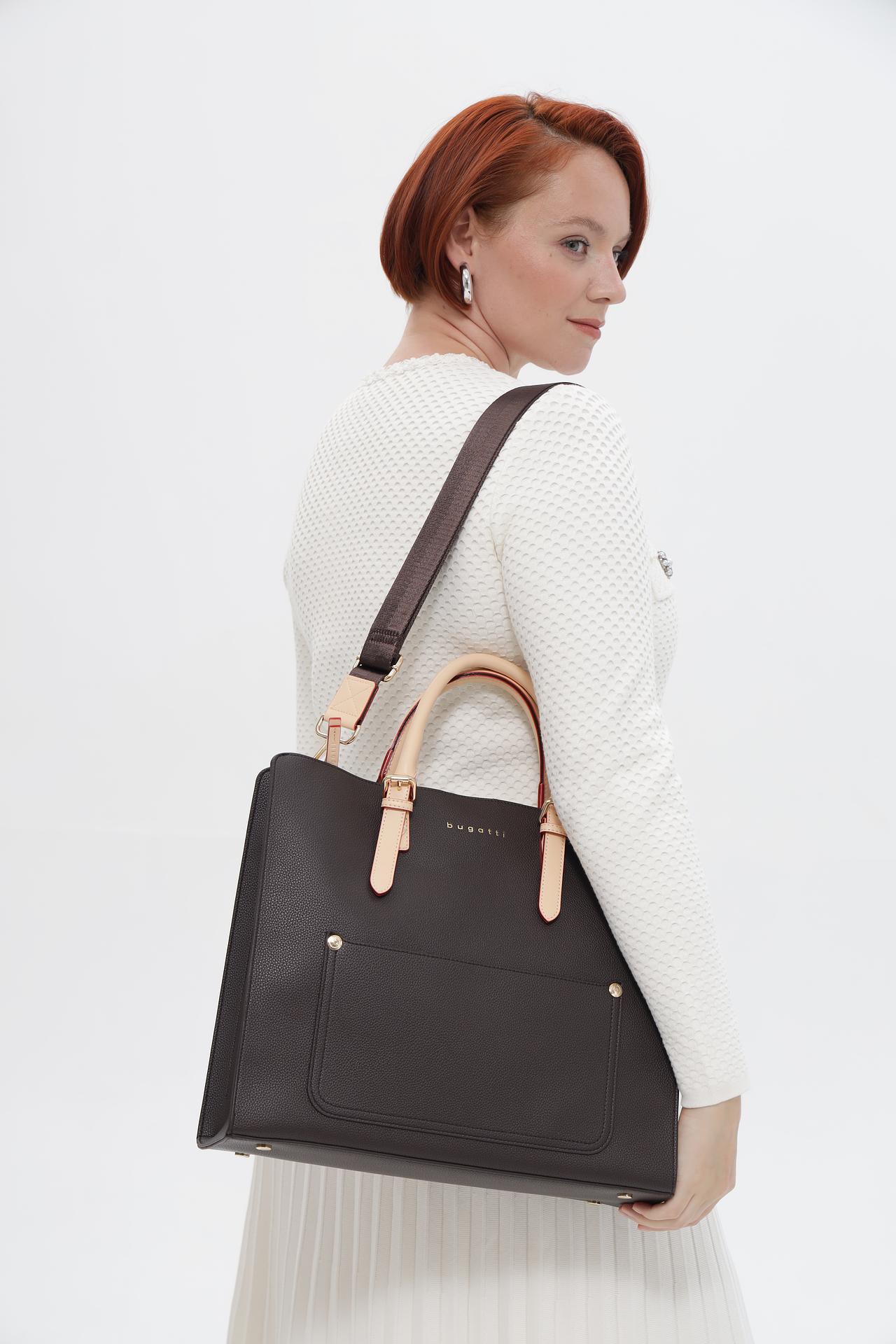 Элегантная женская сумка от бренда Bugatti, выполненная в классическом дизайне. Изделие изготовлено из высококачественного полиуретана, что обеспечивает его долговечность и устойчивость к износу. Модель идеально подойдет для создания изысканных образов.