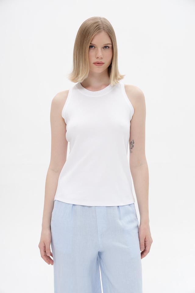 Топ имеет классический крой без рукавов и круглый вырез горловины. Он идеально сочетается с джинсами, брюками, юбками и шортами, позволяя создавать разнообразные образы.
