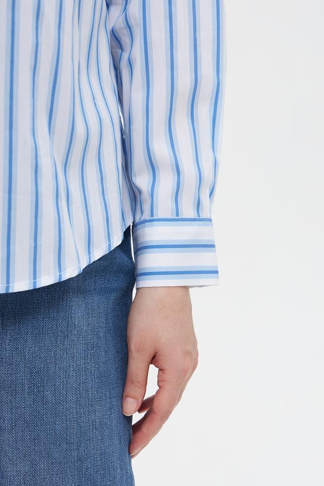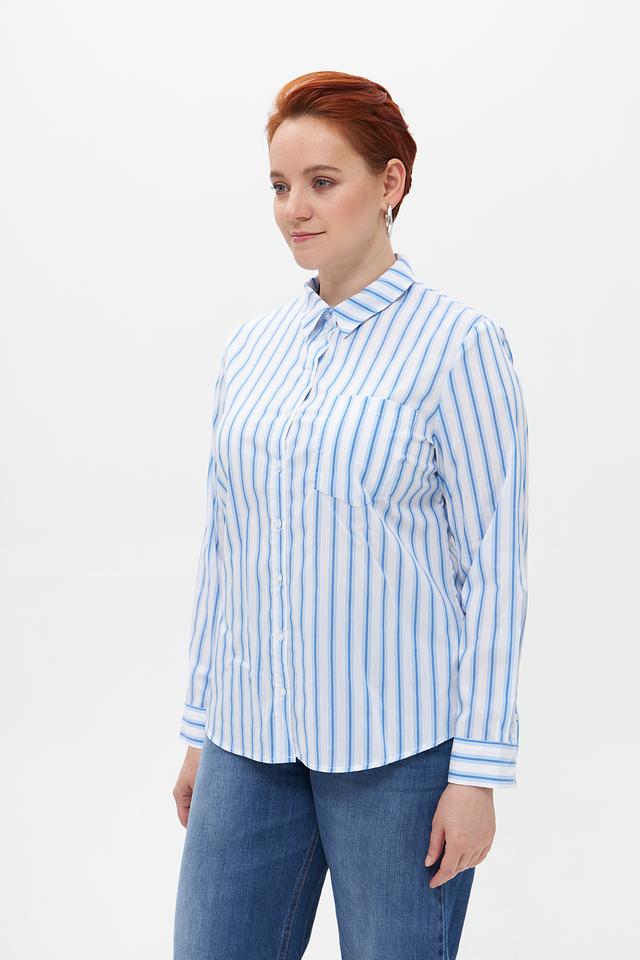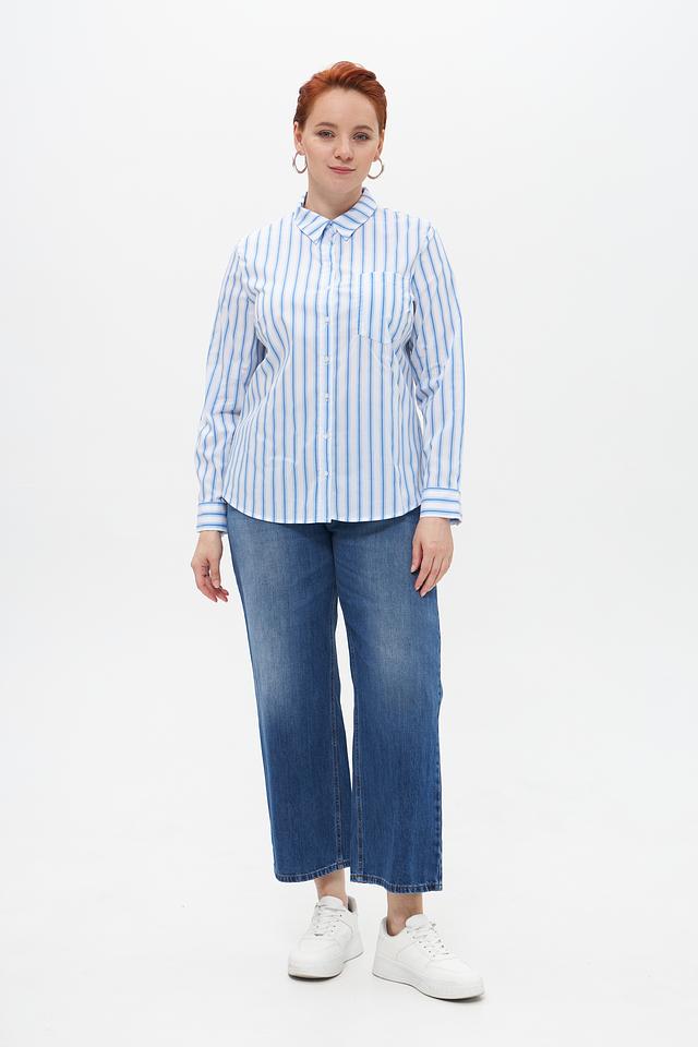 Женская блузка Suza голубого цвета в вертикальную полоску. Изготовлена из смесового хлопка с добавлением полиамида и эластана, обеспечивающего комфорт и удобство в носке. Состав: хлопок 67%, полиамид 28%, эластан 5%