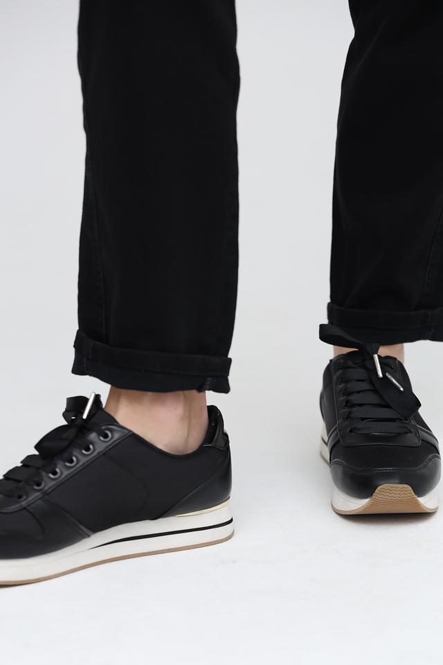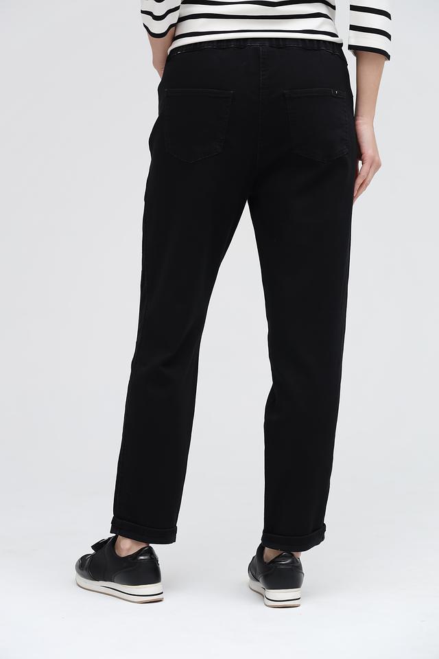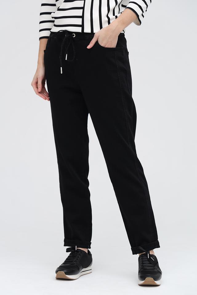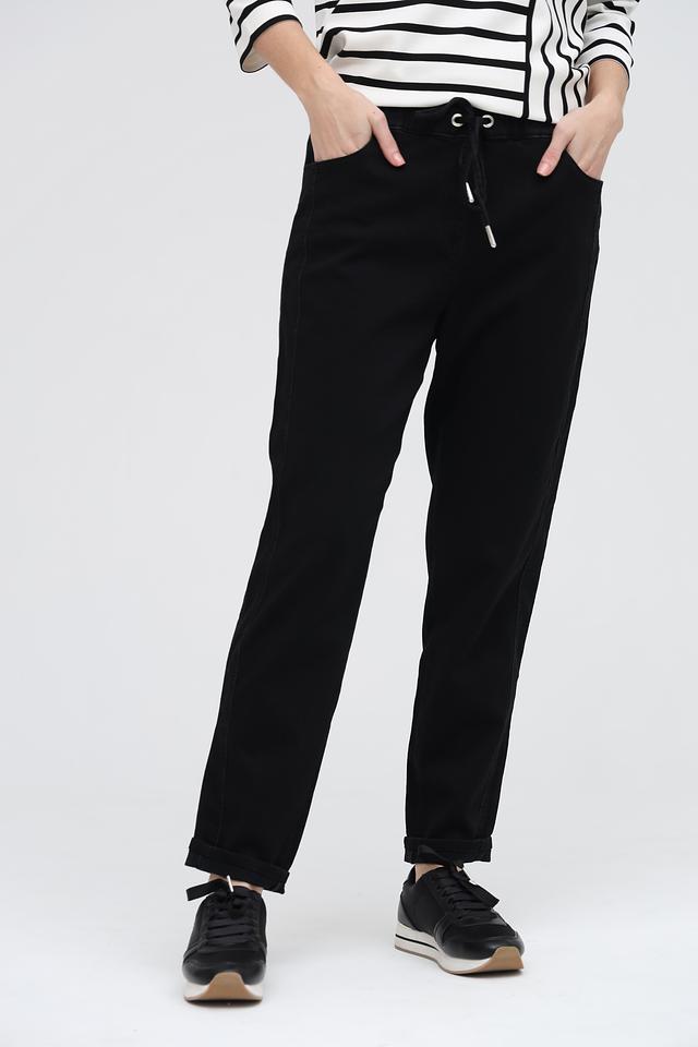 Чёрные джинсы Taifun — это удобная и стильная модель с эластичным поясом и завязками. Прямой крой и манжеты внизу создают современный образ, а состав из хлопка с добавлением эластана обеспечивает комфорт в носке. Состав: хлопок 98%, эластан 2%