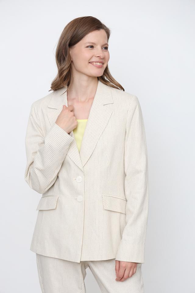 Жакет Taifun бежевого цвета в тонкую полоску – стильное и универсальное решение для создания элегантного образа. Классический крой и натуральный состав обеспечивают комфорт и удобство в носке. Состав: хлопок 83%, лен 17%